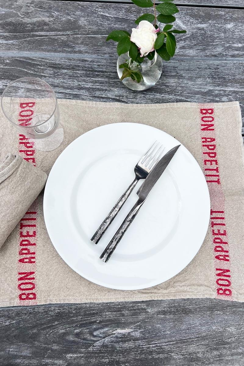 Placemat/napkin Bon appetit 2-pack, lin/rouge