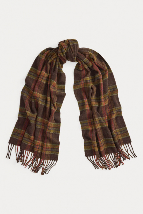 Rutig halsduk i en mjuk kashmirblandning med fransar nedtill från Polo Ralph Lauren.- 183x50 cm