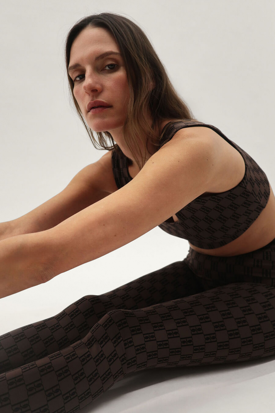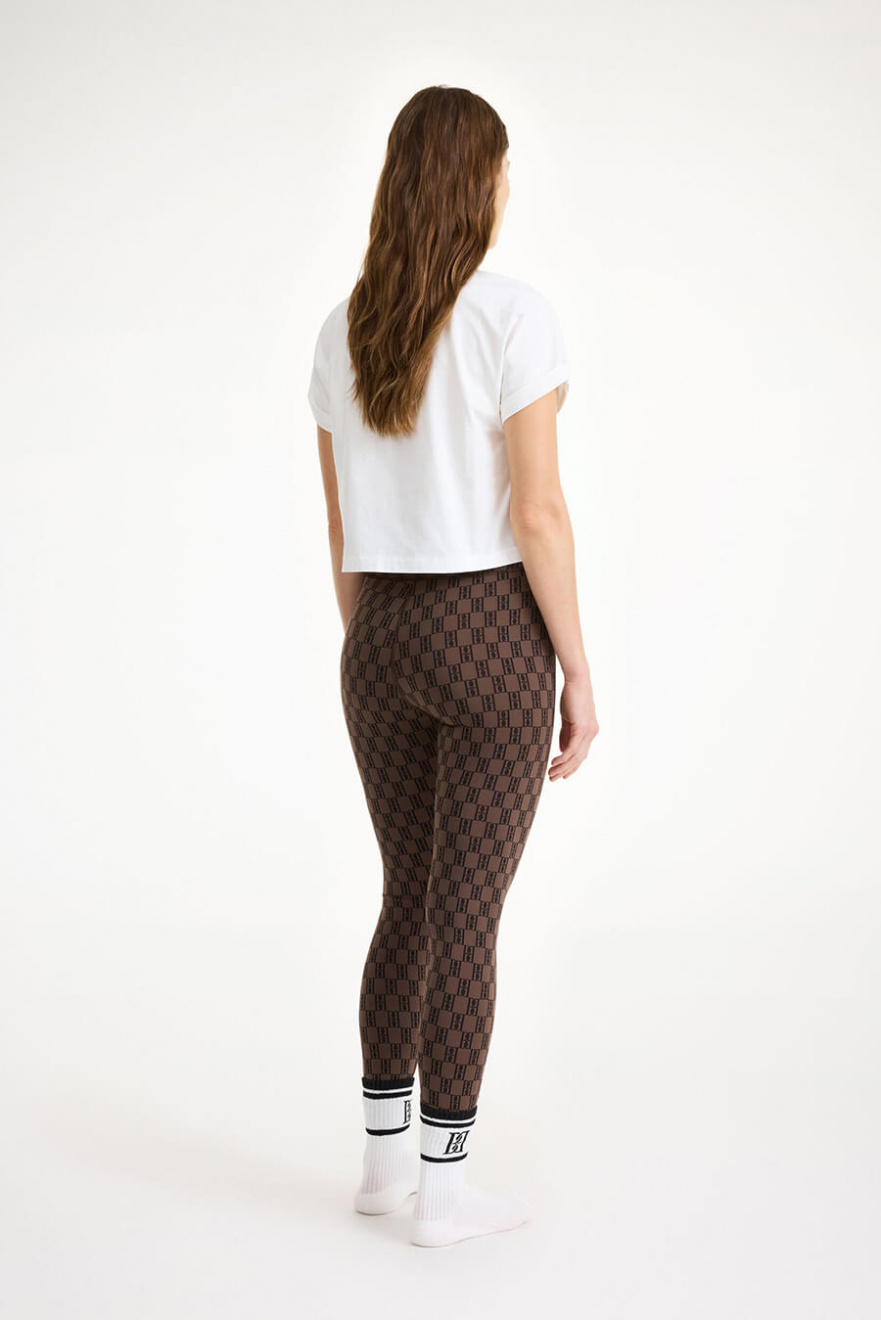 Ta din träningsgarderob till nästa nivå med dessa mönstrade bruna träningstights. Med perfekt passform och trendig design kombinerar de stil och funktion. Perfekta för gymmet eller power walks.Mönstrade träningstights med hög midja, mycket stretch och smal passform från By Malene Birger.