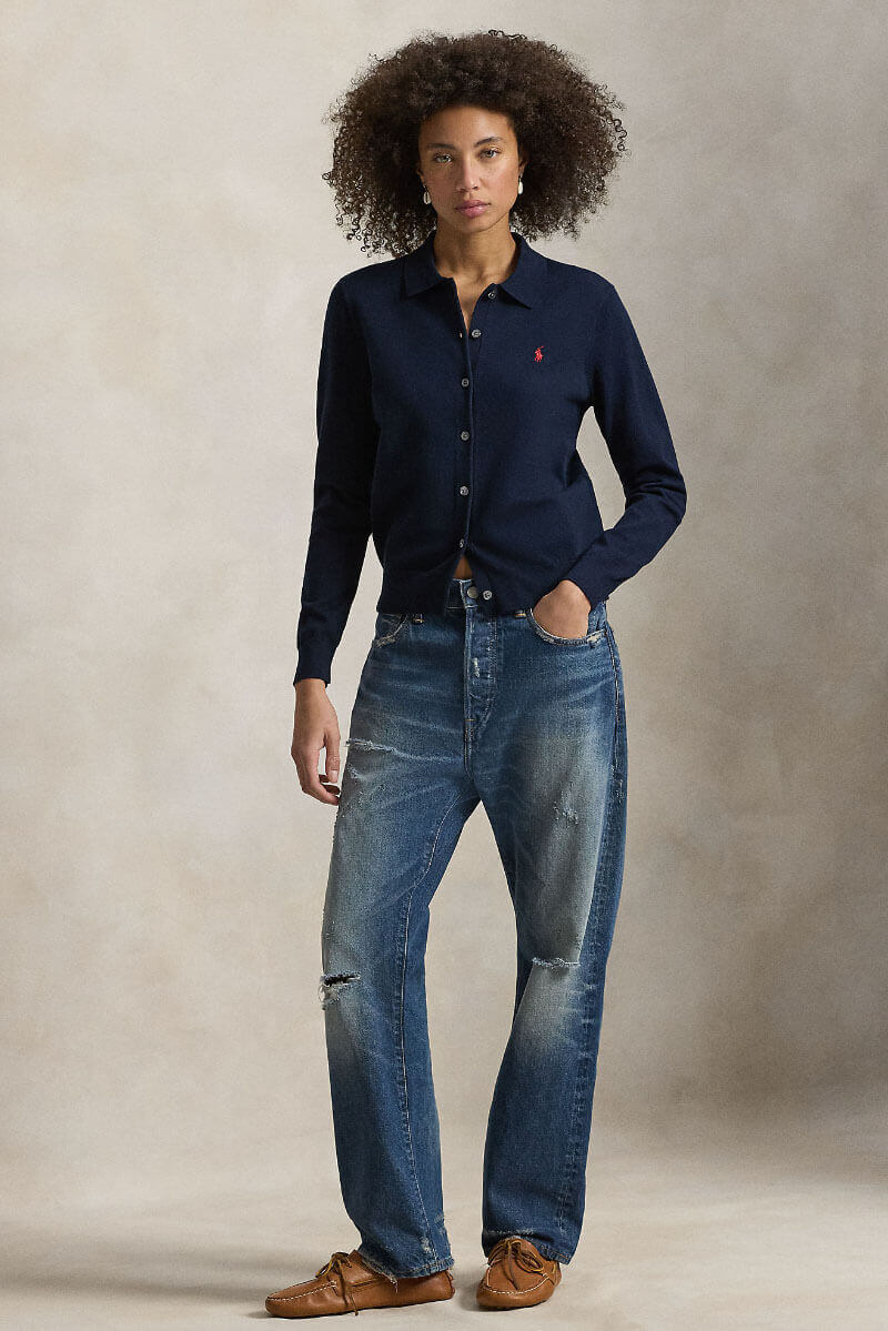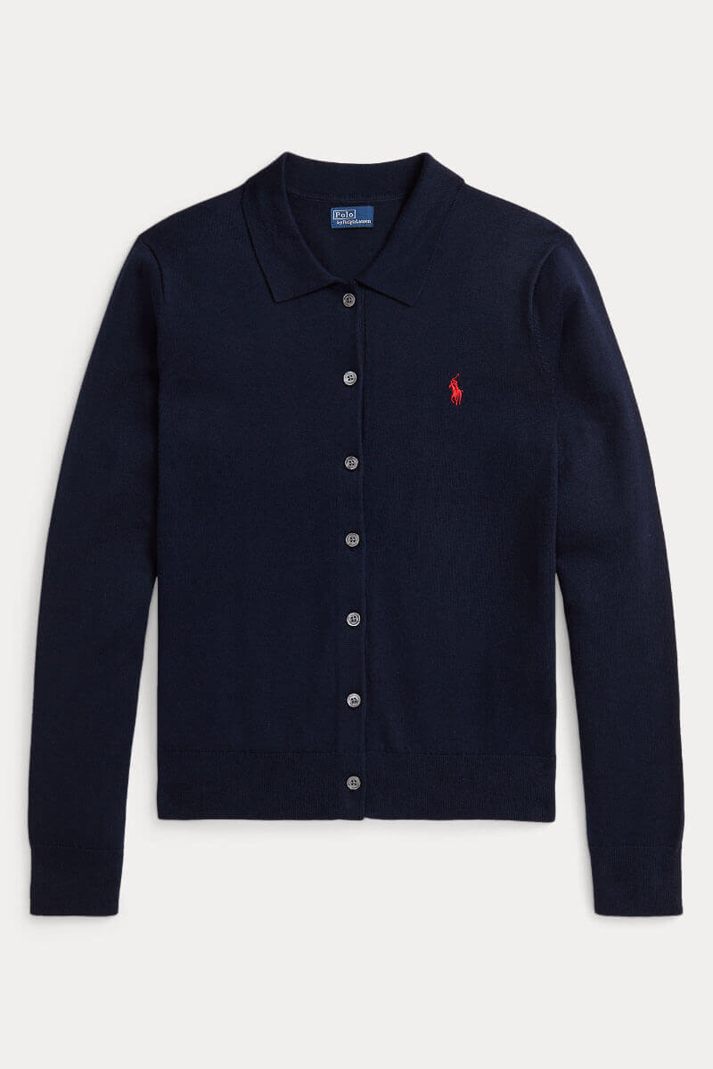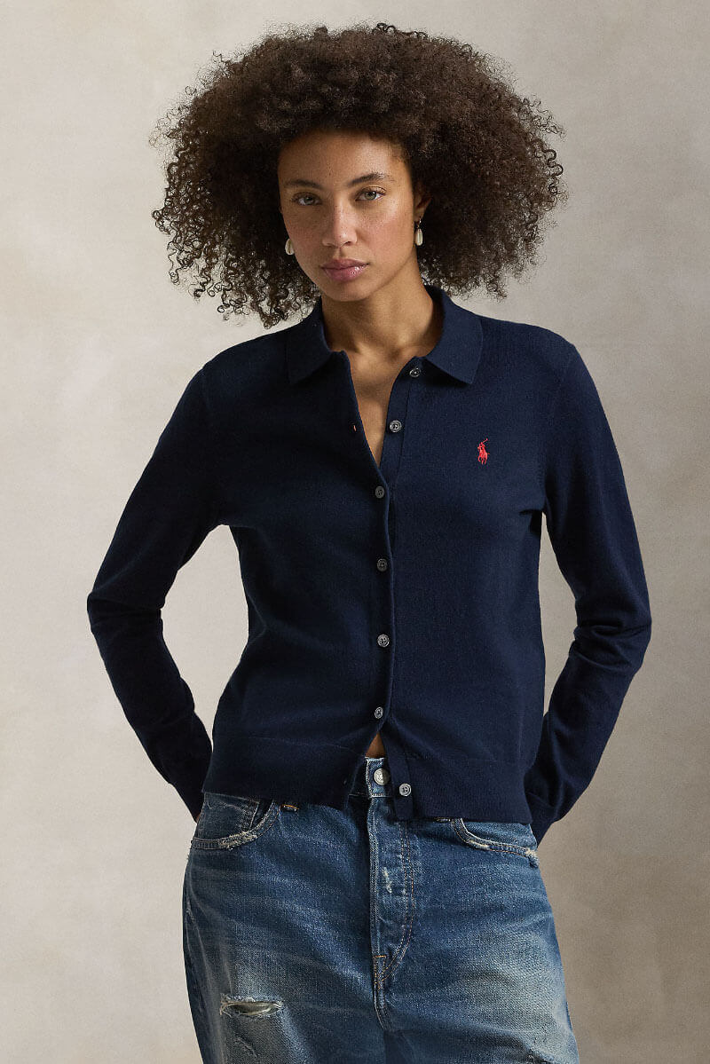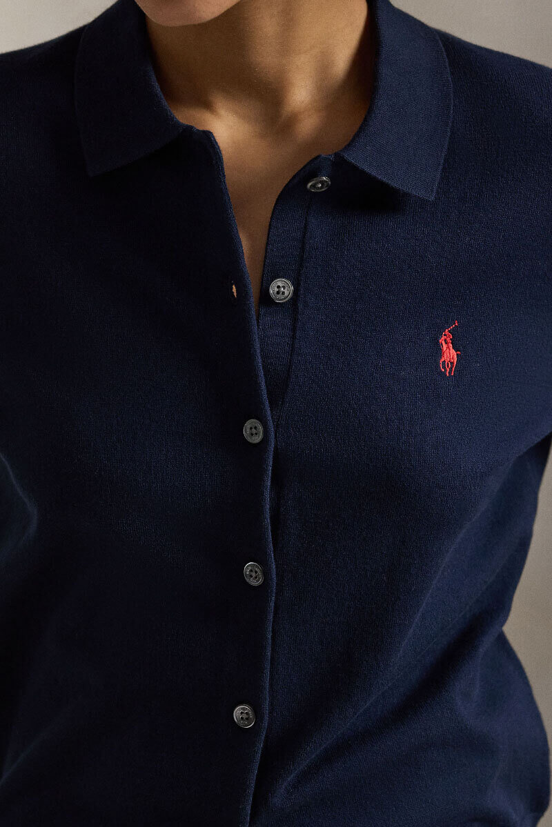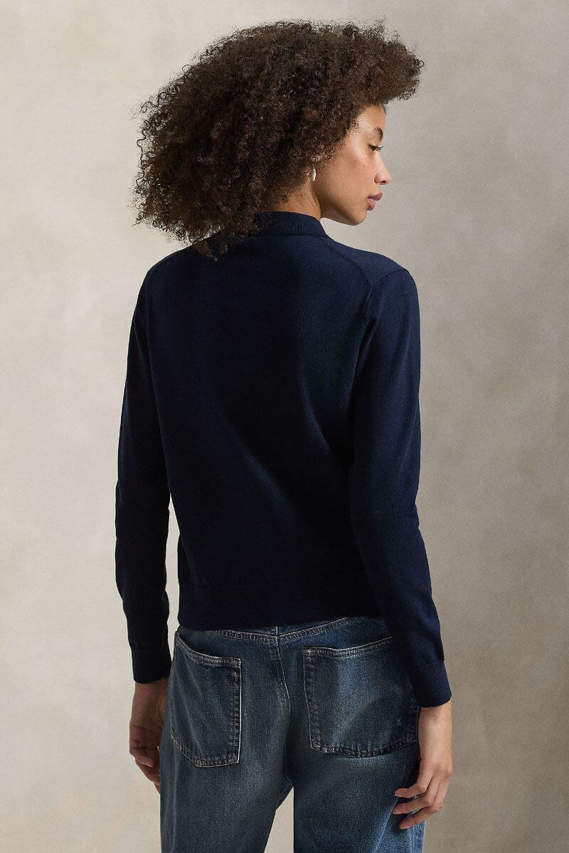 Polo-collar buttoned cardigan, Hunter navy