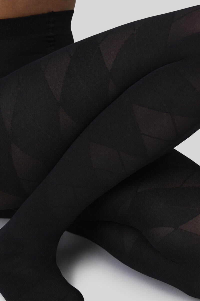 Rebecka Argyle Tights är ett par 50 denier-strumpbyxor med en lekfull twist, med ett subtilt argyle-mönster som ger varje look lite extra attityd.50 denier-strumpbyxor med semitransparent finish, mjuk linning, flatlocksömmar och tåförstärkning. Stickade av återvunnen garn.