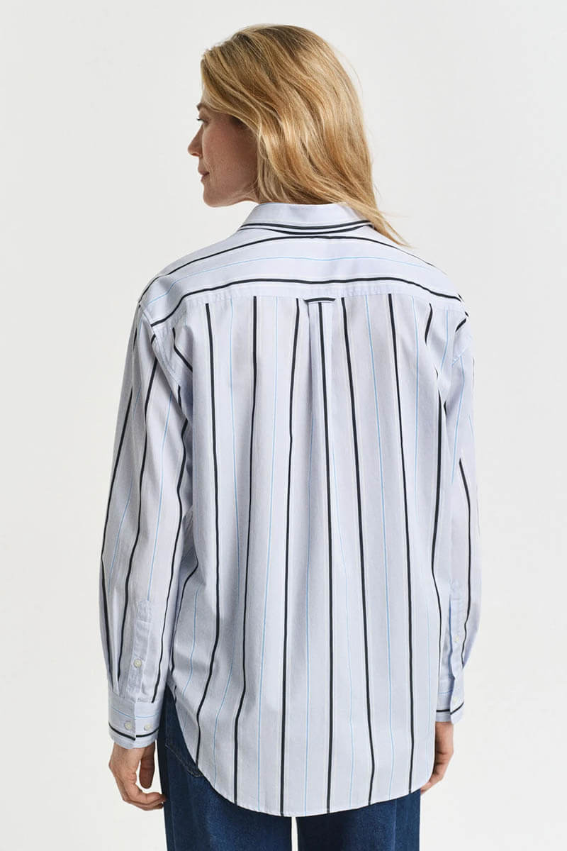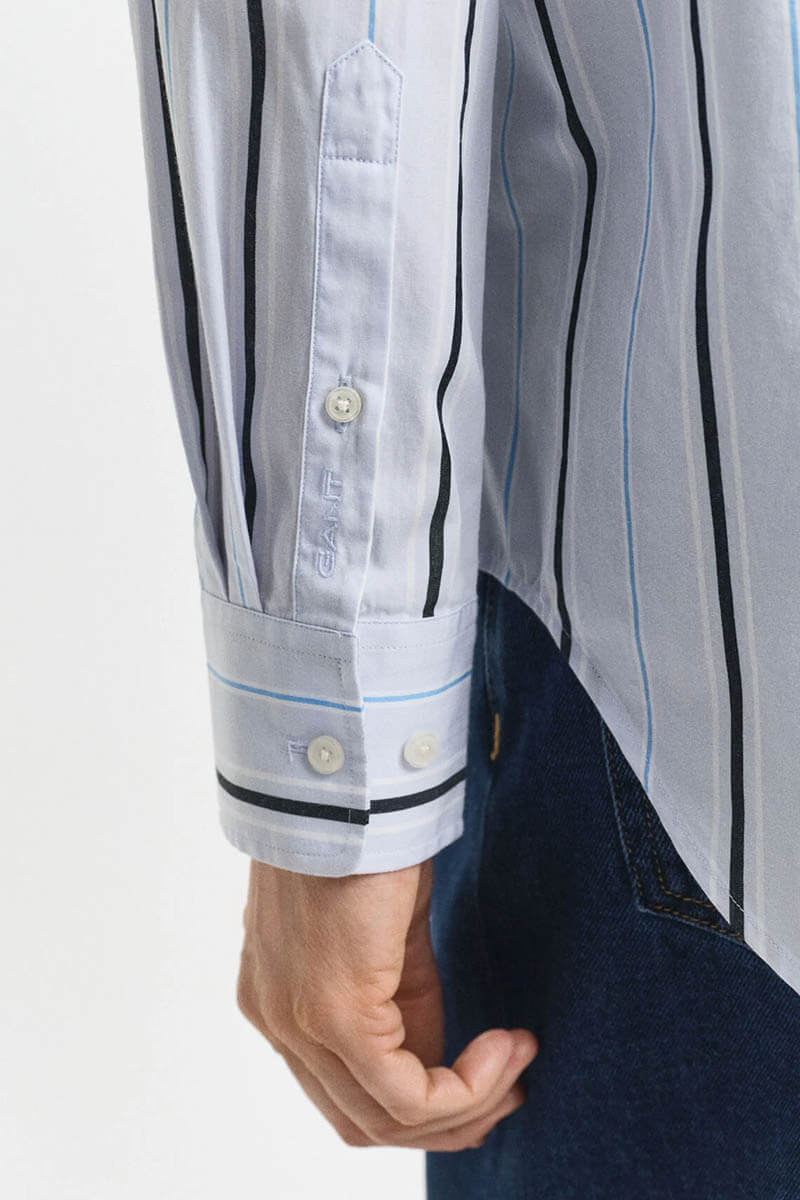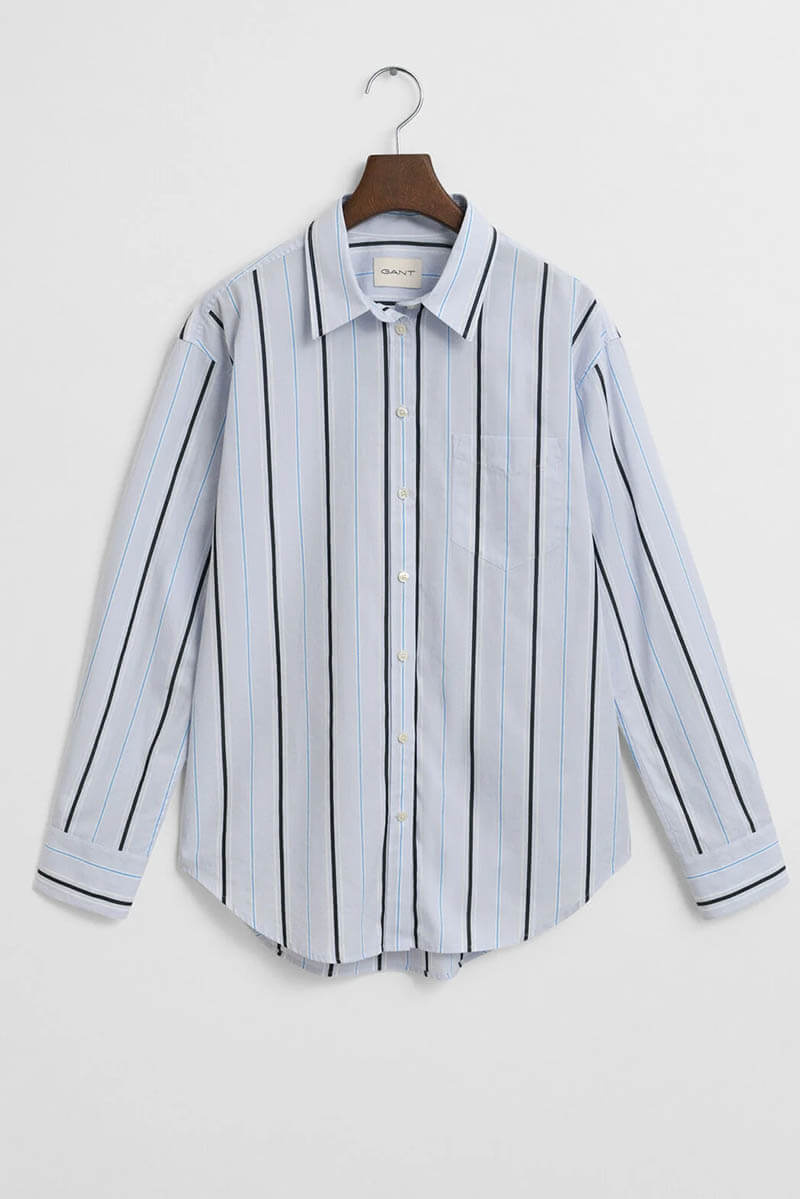 Det finns plagg som aldrig förlorar sin plats i garderoben – och den blå- och vitrandiga poplinskjortan från GANT är just ett sådant. Med rötterna i den amerikanska östkustens preppytradition och en siluett som flirtar med den franska elegansen från 60-talet, får skjortan nytt liv i en modern kvinnas stiluniversum.