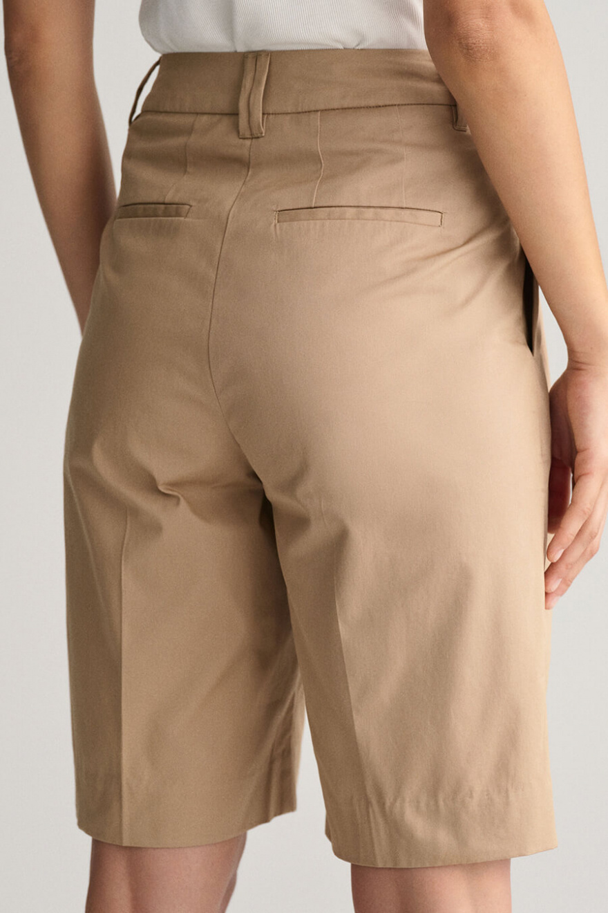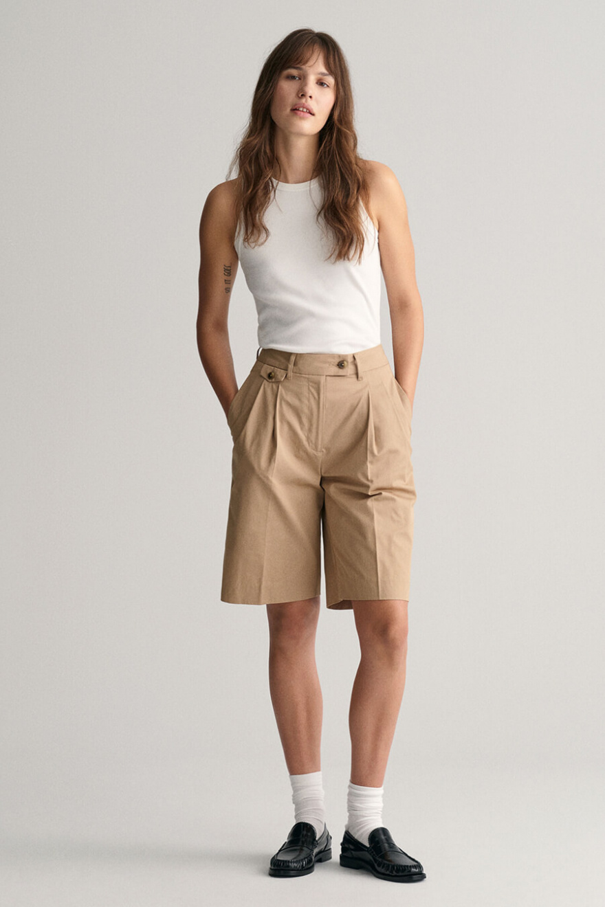 Mjuka chinoshorts i en lätt twillväv av 100% bomull. De har en relaxed fit, hög midja och en längd som slutar strax ovanför knäna. Kompletta med dubbla veck fram, fickor i sidsömmen fram, pressveck fram och bak samt en förlängd linning med knappstängning – de perfekta shortsen att bära hela sommaren både med ett linne eller en blus.Relaxed fit