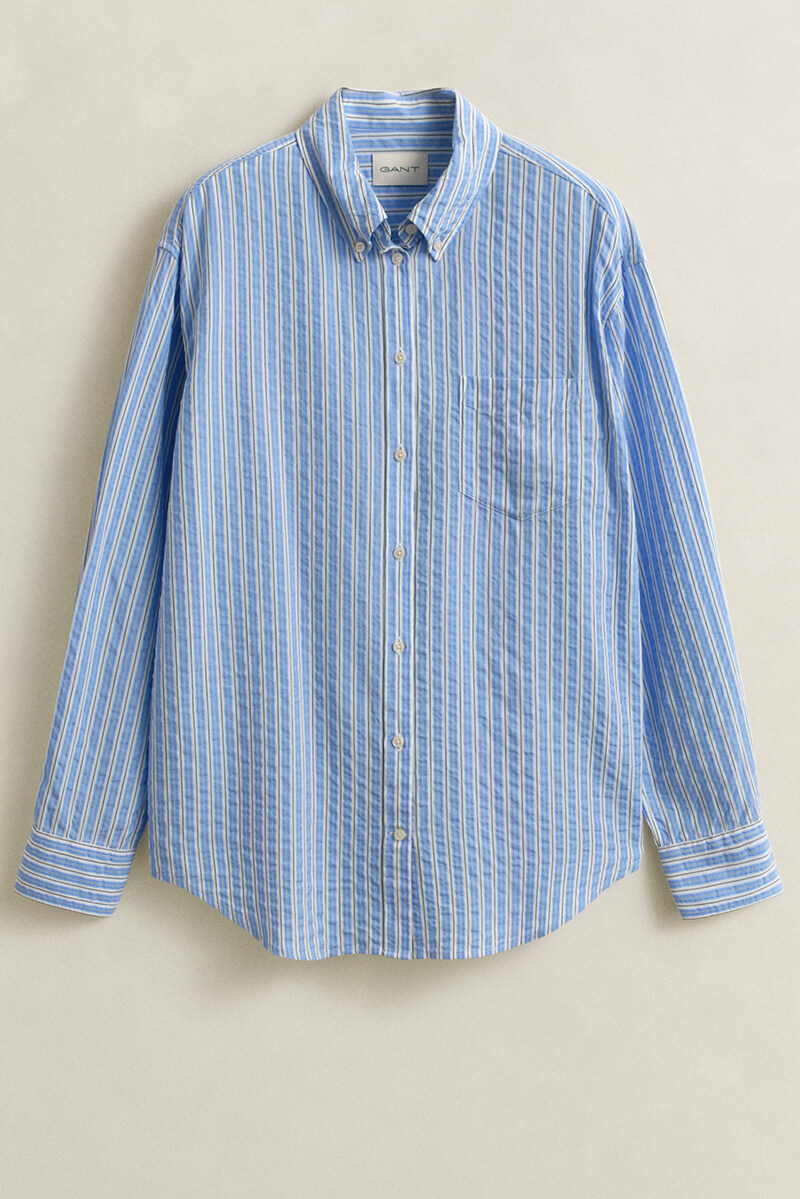Rel stripe seersucker bd shirt, Hydrangea blue