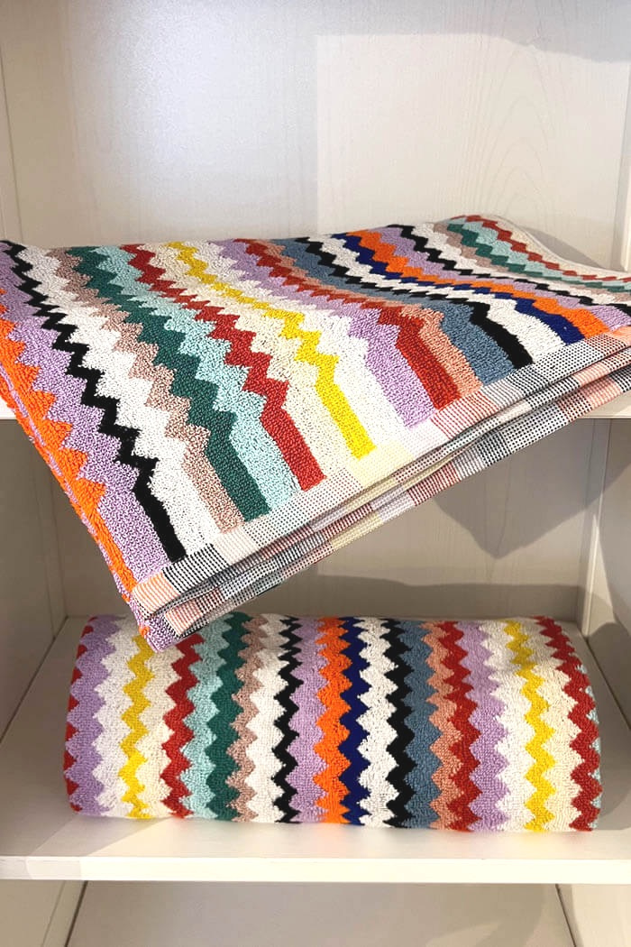 Lyxiga Missoni Home gör de finaste handdukarna med sina egna färger och mönster står de ut och skapar en lyxig känsla i ditt badrum.100% Bomull