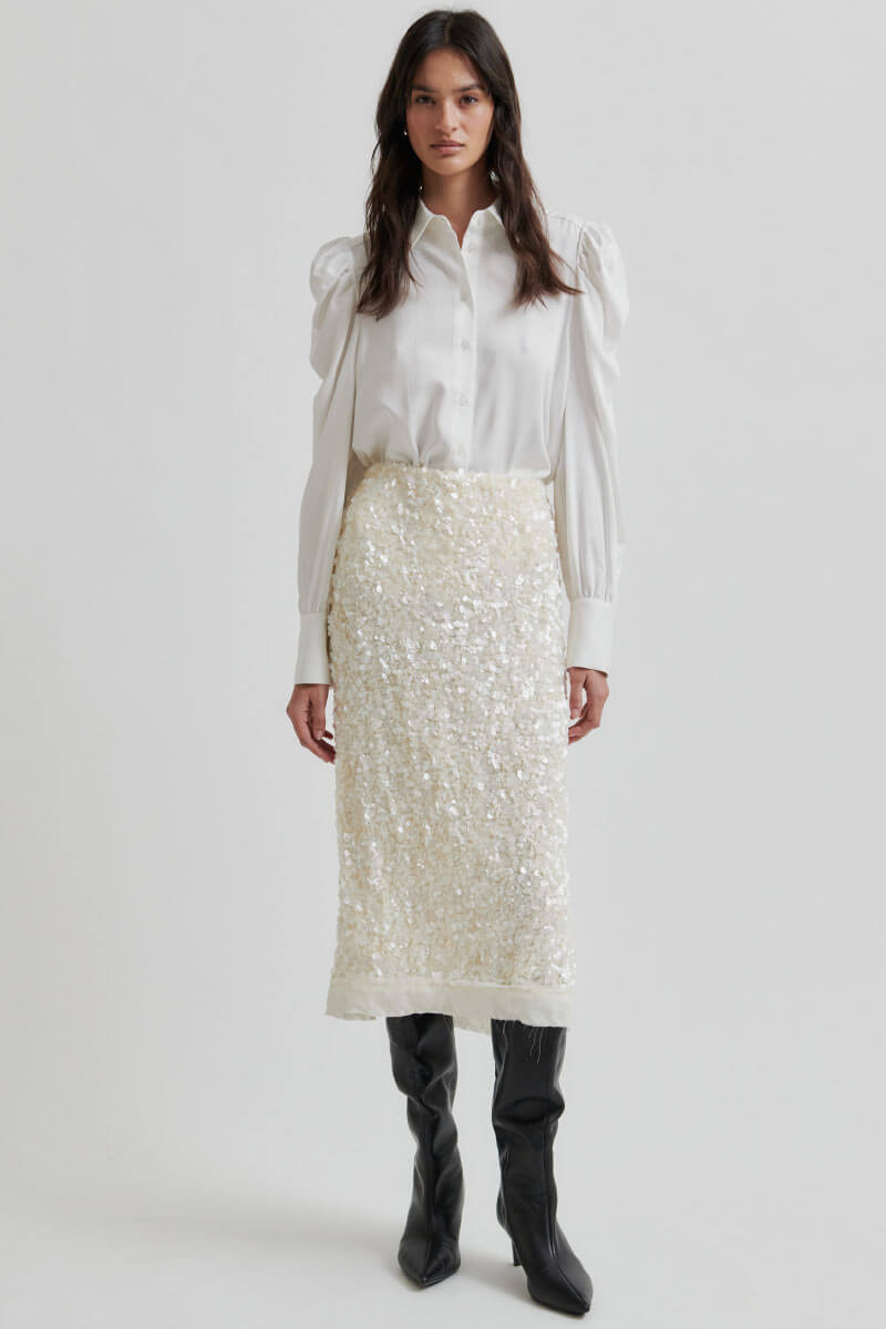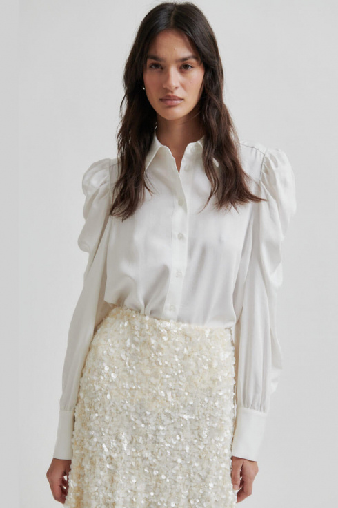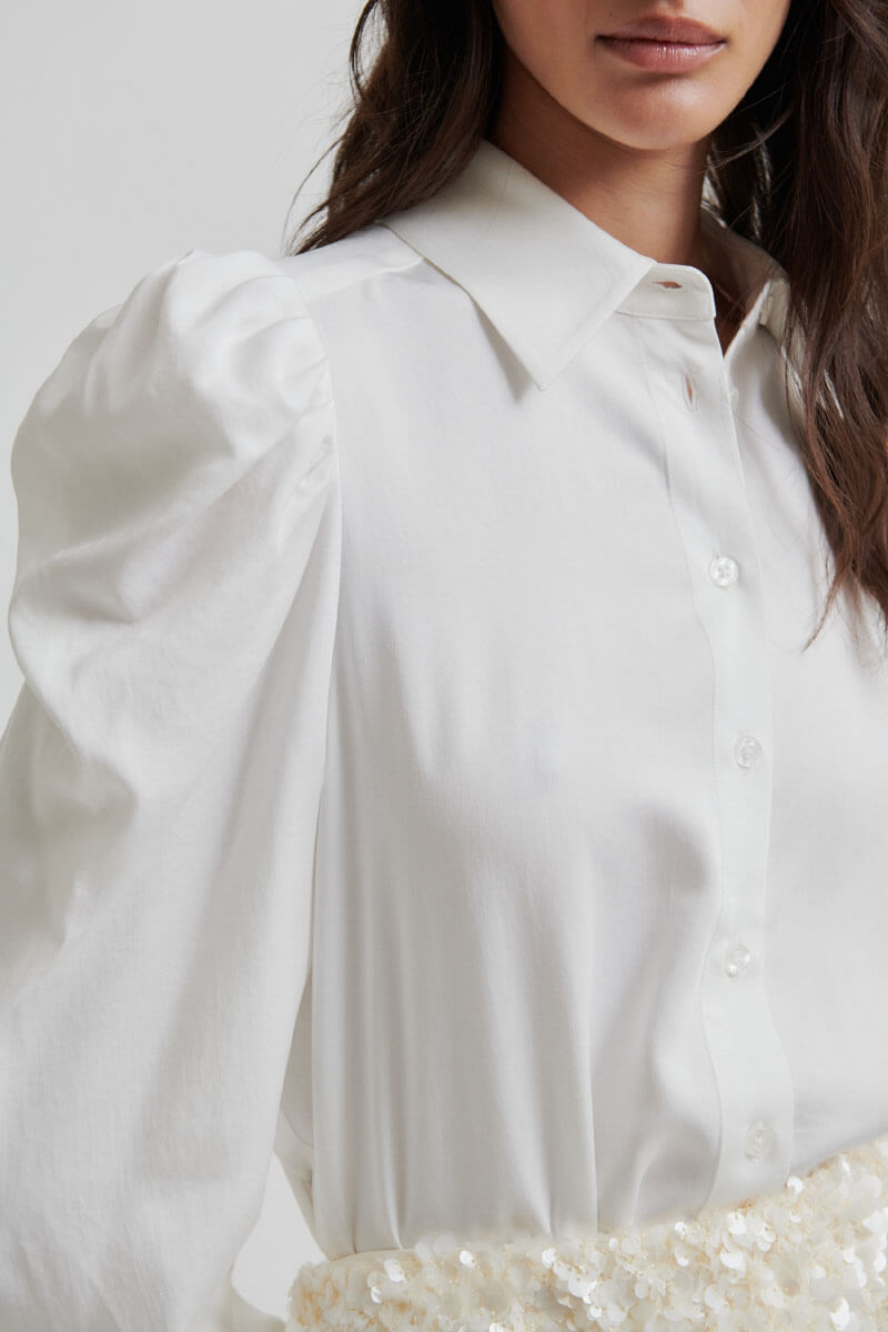 Blus med puffärm och klassisk krage som ger en romantisk men modern känsla. Kombinera med skräddade svarta byxor och loafers för dag, eller med midikjol och smala klackar för en sofistikerad kvällslook med volym och elegans.Blus i en mjuk viskosblandning med puffiga långa ärmar, krage, stängs med knappar fram och ledig passform från Second Female.