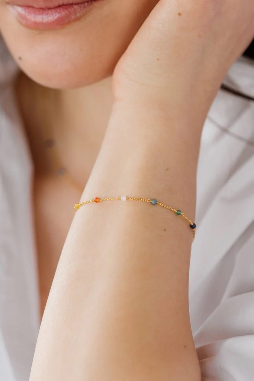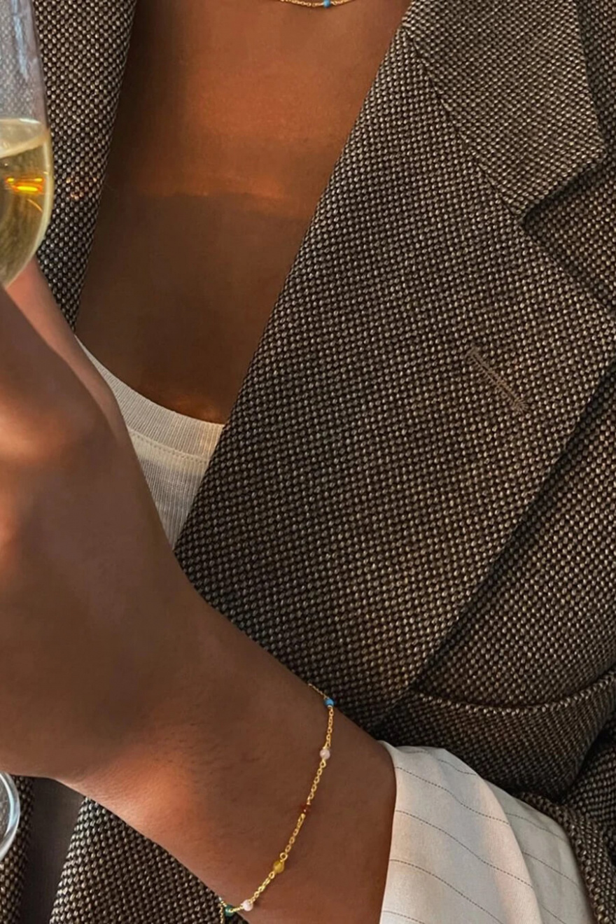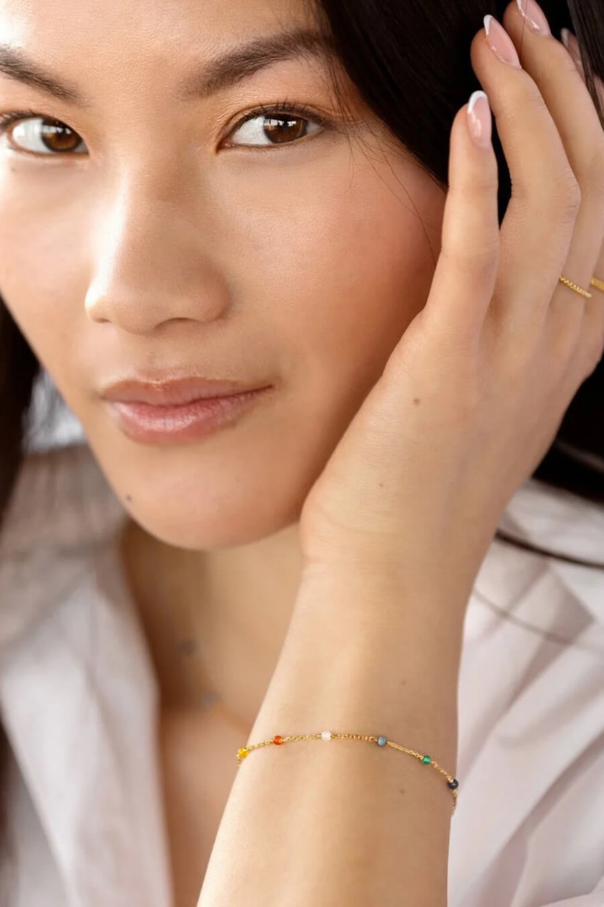 Armband i återvunnet silver med 18K guldöverdrag och färgglada stenar från Syster P.- Material: 925 sterlingsilver, 100% återvunnet