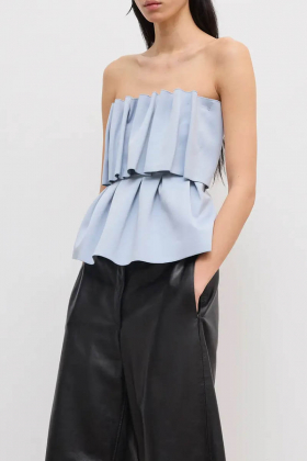 Draperad topp i återvunnen blandning med gömd dragkedja i sidan, något stretch och kroppsnära passform från Dagmar.- 63% Polyamid 22% Återvunnen Polyamid 15% Elastan