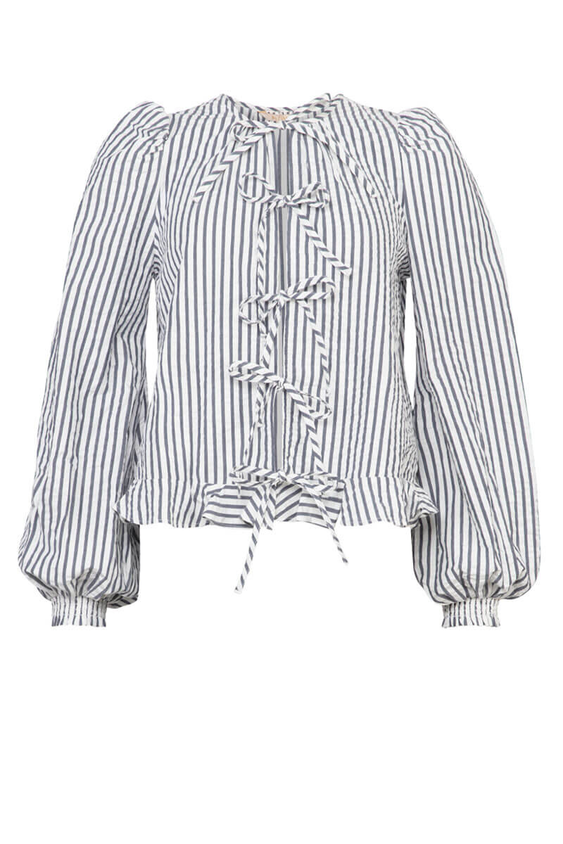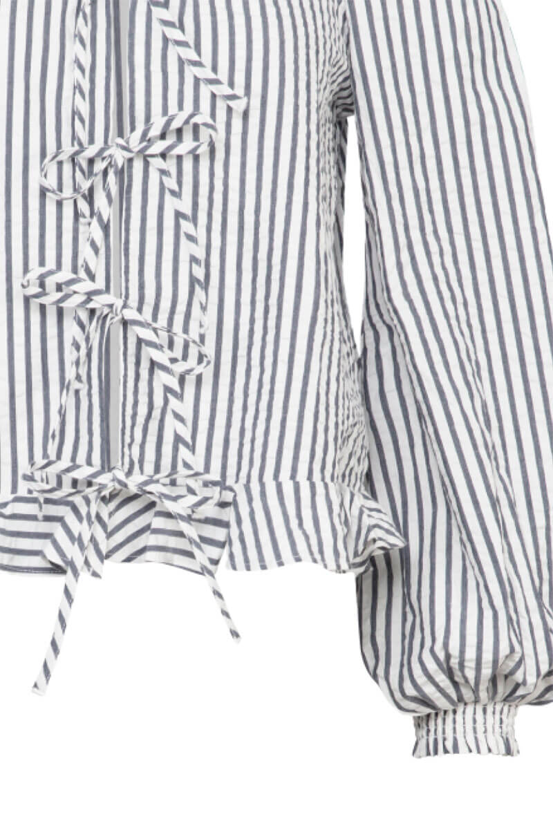 Seersucker Bow Blouse, Marine stripe
