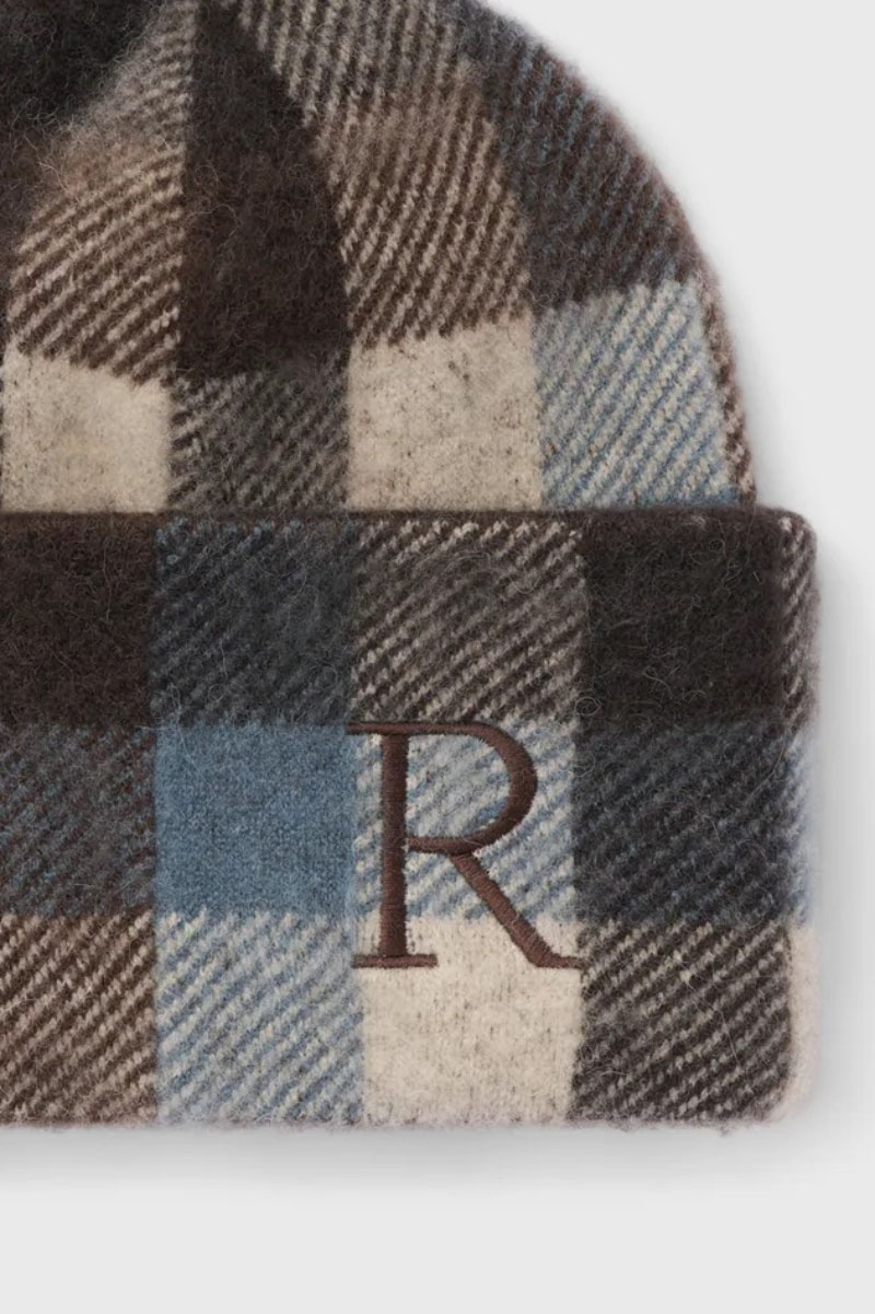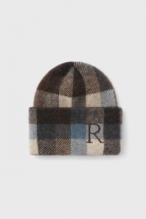 En rutig stickad mössa i mjuk alpackablandning med uppvikt kant ger värme och karaktär. Matcha med oversized kappa, stickad halsduk och boots för en modern vinterlook som kombinerar funktion, textur och avslappnad elegans.Stickad mössa i mjuk ullblandning med uppvikt kant och broderat R fram från Rodebjer.