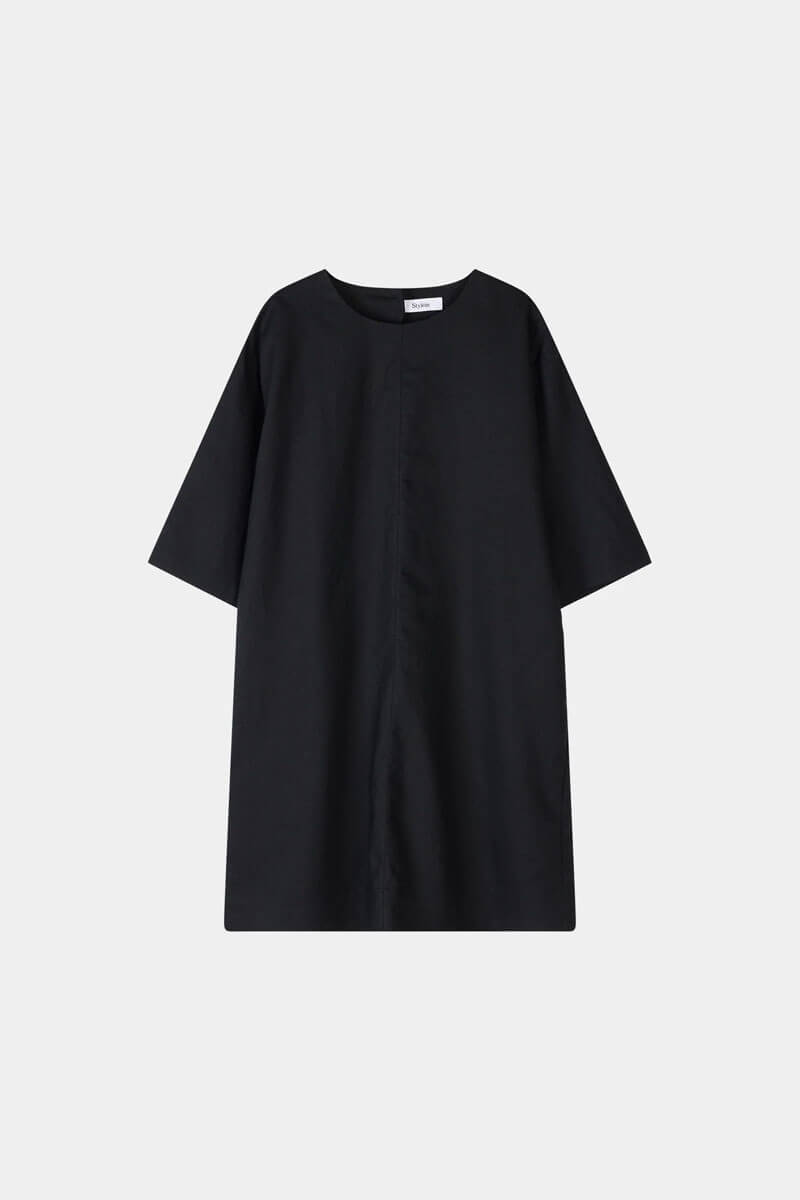 Sini Dress är en stilren och luftig klänning tillverkad i svalt linne som ger ett naturligt och elegant fall. Den boxiga siluetten skapar en avslappnad men samtidigt strukturerad form som gör klänningen både bekväm och tidlös.