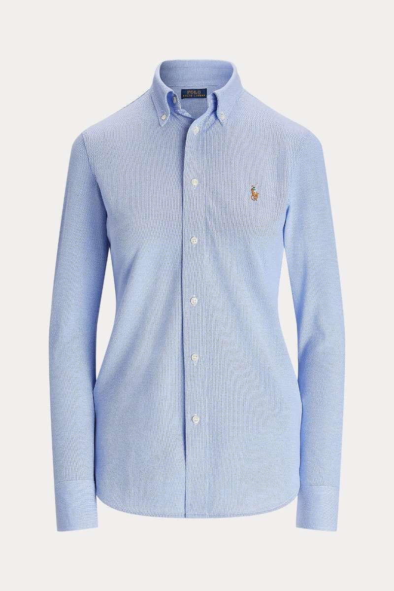 Den ljusblå oxfordskjortan balanserar klassiskt och modernt. Styla den instoppad i skräddade byxor, addera loafers och en trenchcoat för en sofistikerad höstlook. En skjorta som alltid levererar tidlös elegans, avslappnad lyx och stilsäker enkelhet.Mjuk skjorta i jersey med button down krage, stretch, liten broderad häst fram, justerbara manschetter och smal passform med smala axlar och avsmalnad midja från Polo Ralph Lauren.