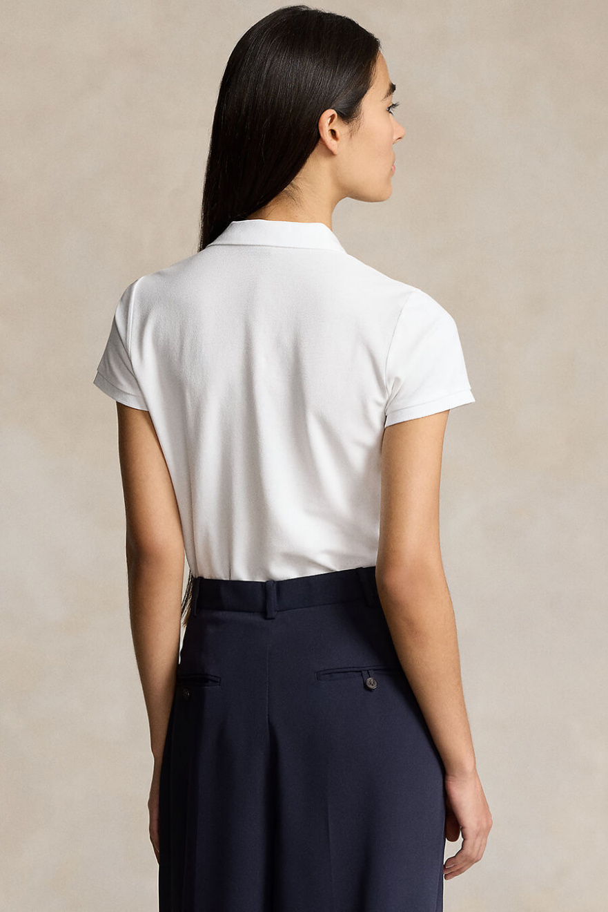 En vit piké i smal passform är definitionen av tidlös elegans. Med korta ärmar och en skarp siluett blir den ett nyckelplagg i varje garderob – lika rätt till jeans som under kavajen. En klassiker att återvända till.Piké i bomull med smal passform, krage, liten broderad logga fram, korta ärmar och stängs med knappar fram från Polo Ralph Lauren.