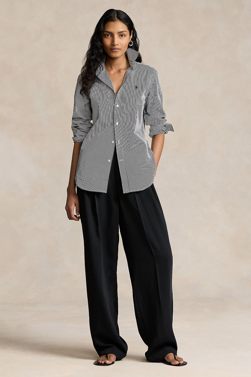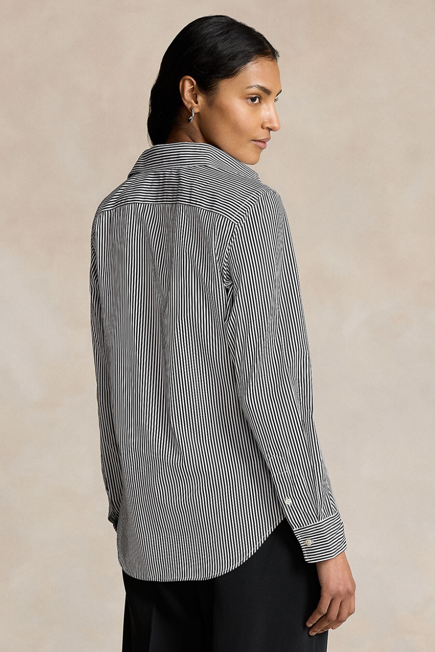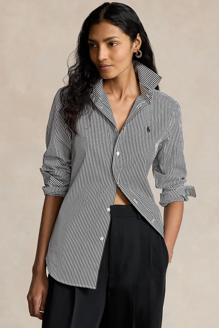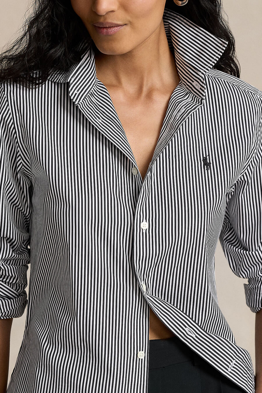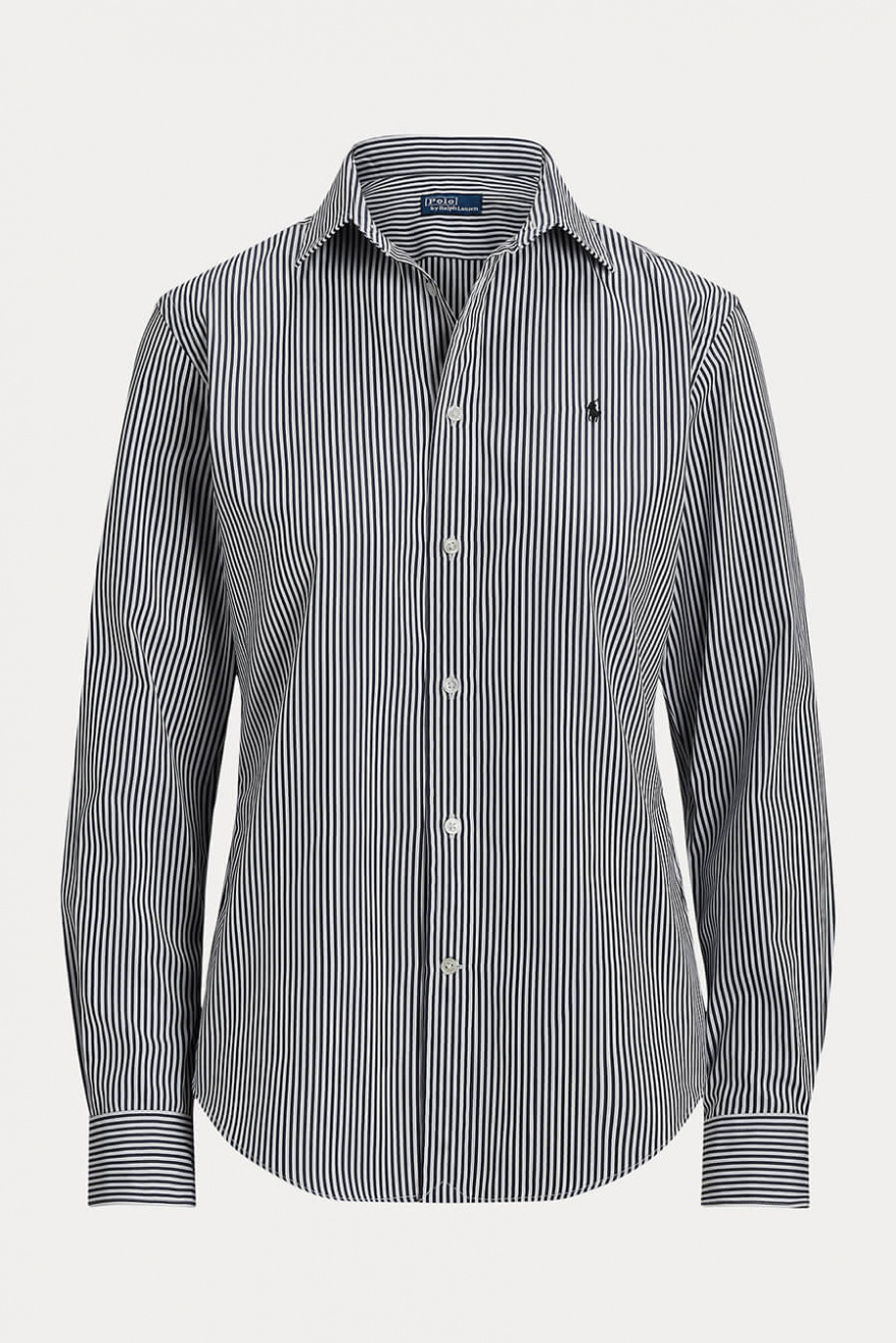 Den randiga bomullsskjortan ger en tidlös och sofistikerad stil. Perfekt för både kontoret och fritiden, erbjuder den en mjuk komfort och en elegant, modern edge i varje look.Randig skjorta i bomull med insvängd modell, krage och liten broderad logga från Polo Ralph Lauren.