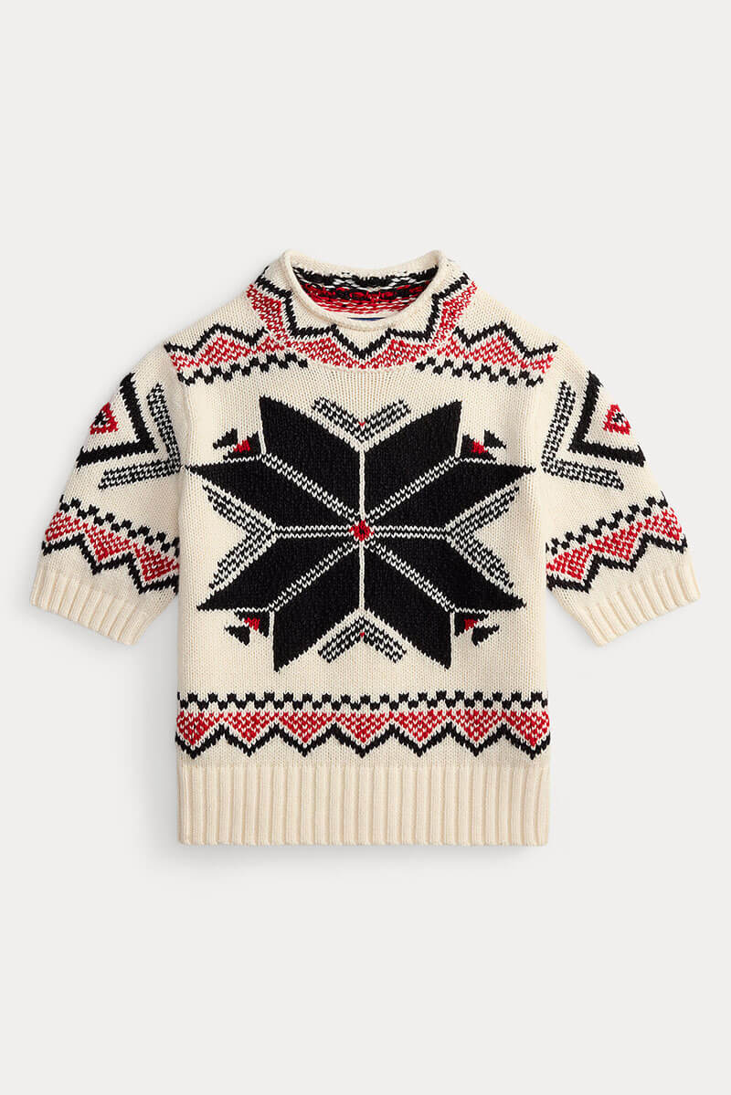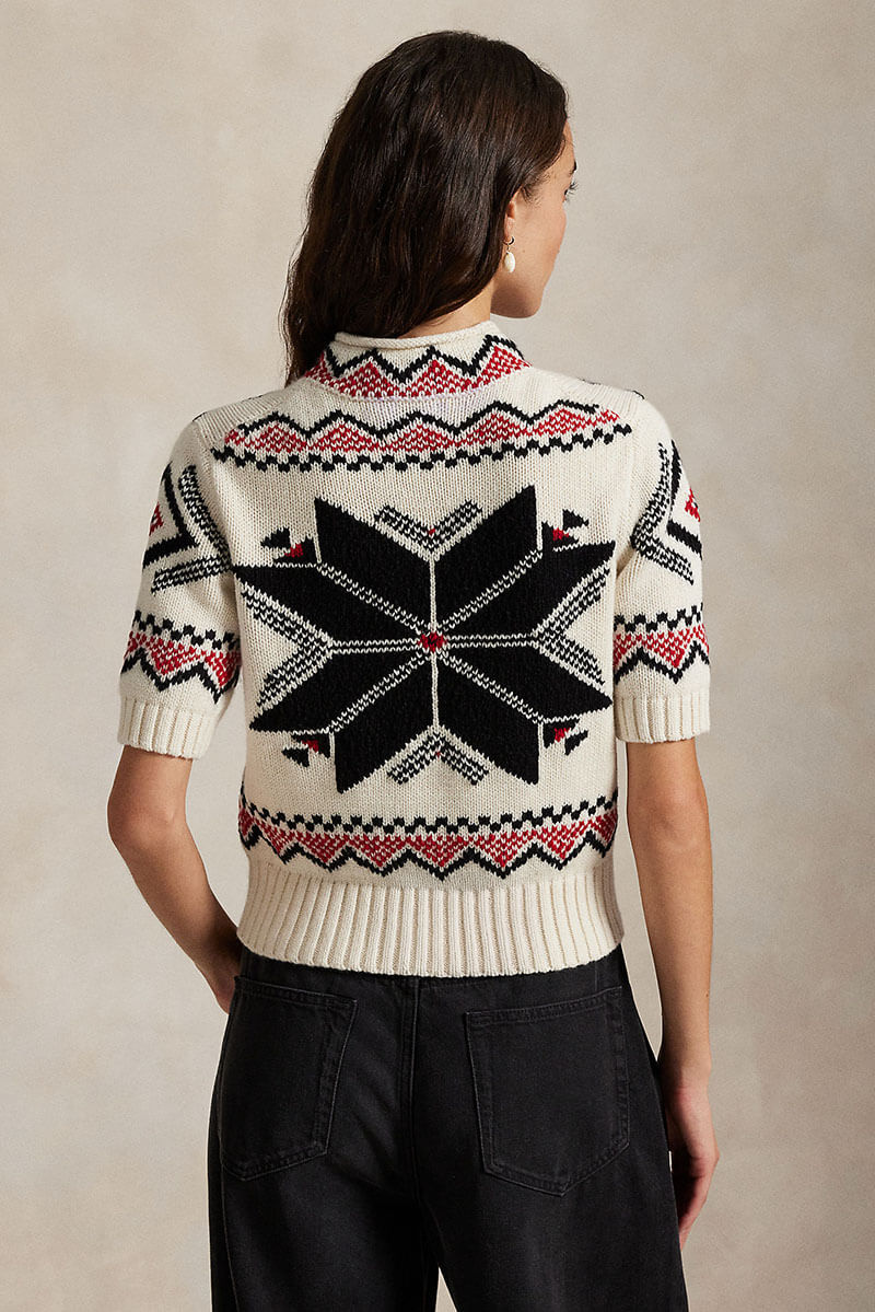 Snowflake Mockneck Short-Sleeve Jumper, Cream Multi