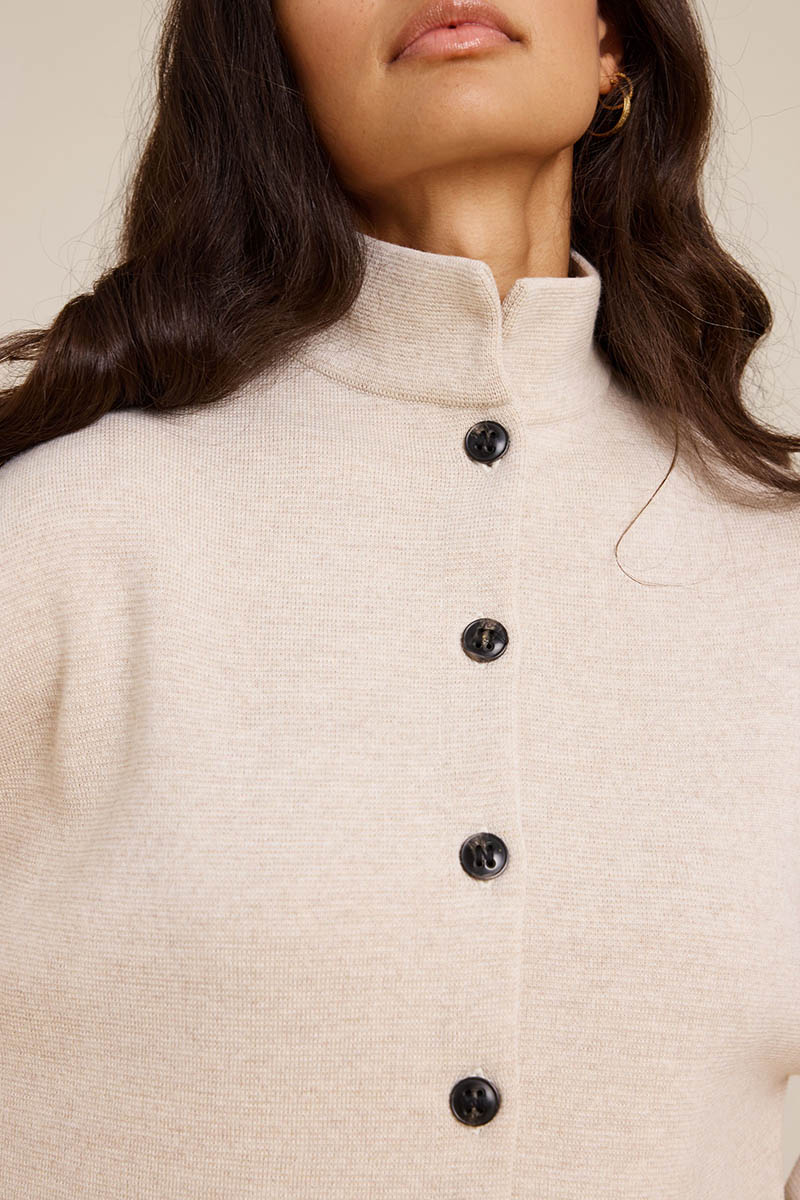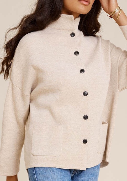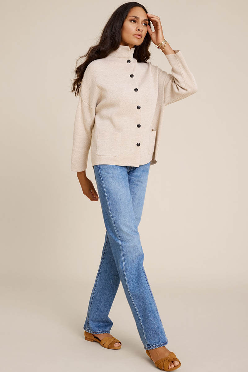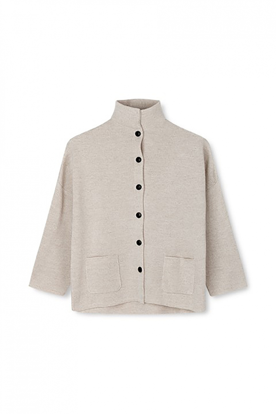 Kofta i en ullblandning med krage, fickor fram, 4/5 ärmar, lös passform och stängs med knappar fram från Sibin Linnebjerg.- 50% Merino ull 50% Akryl