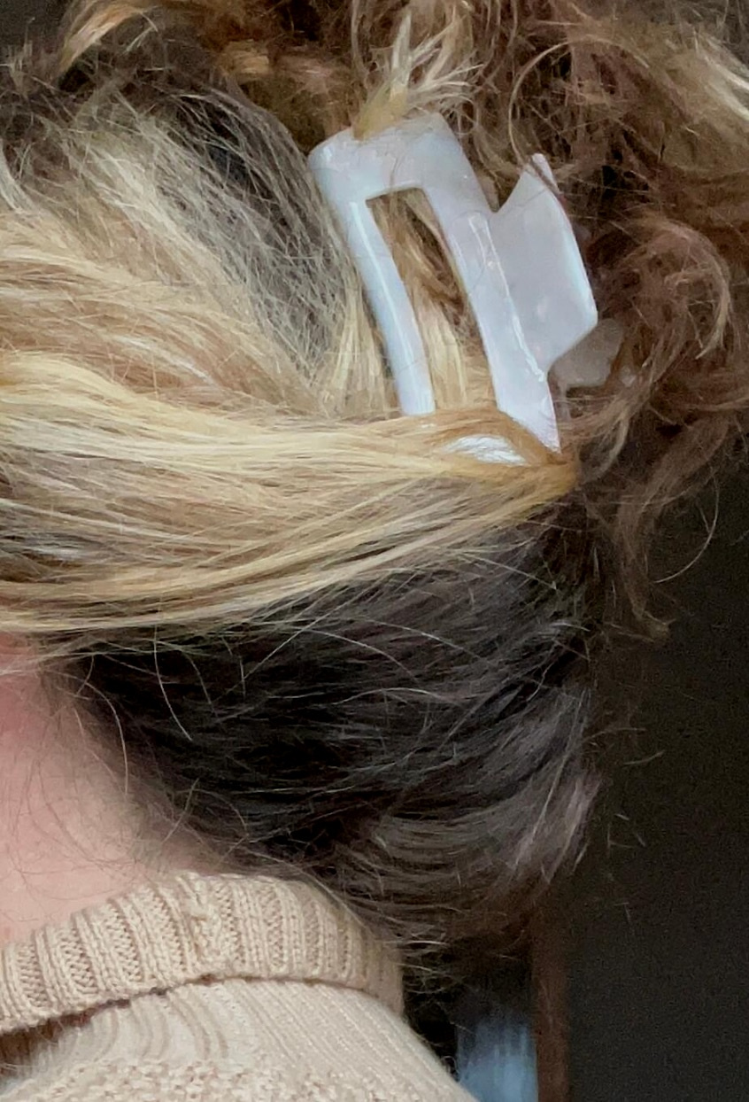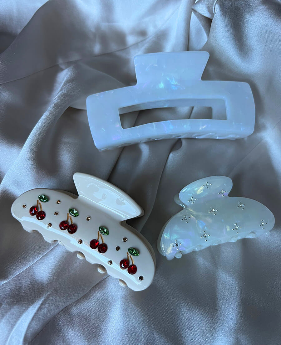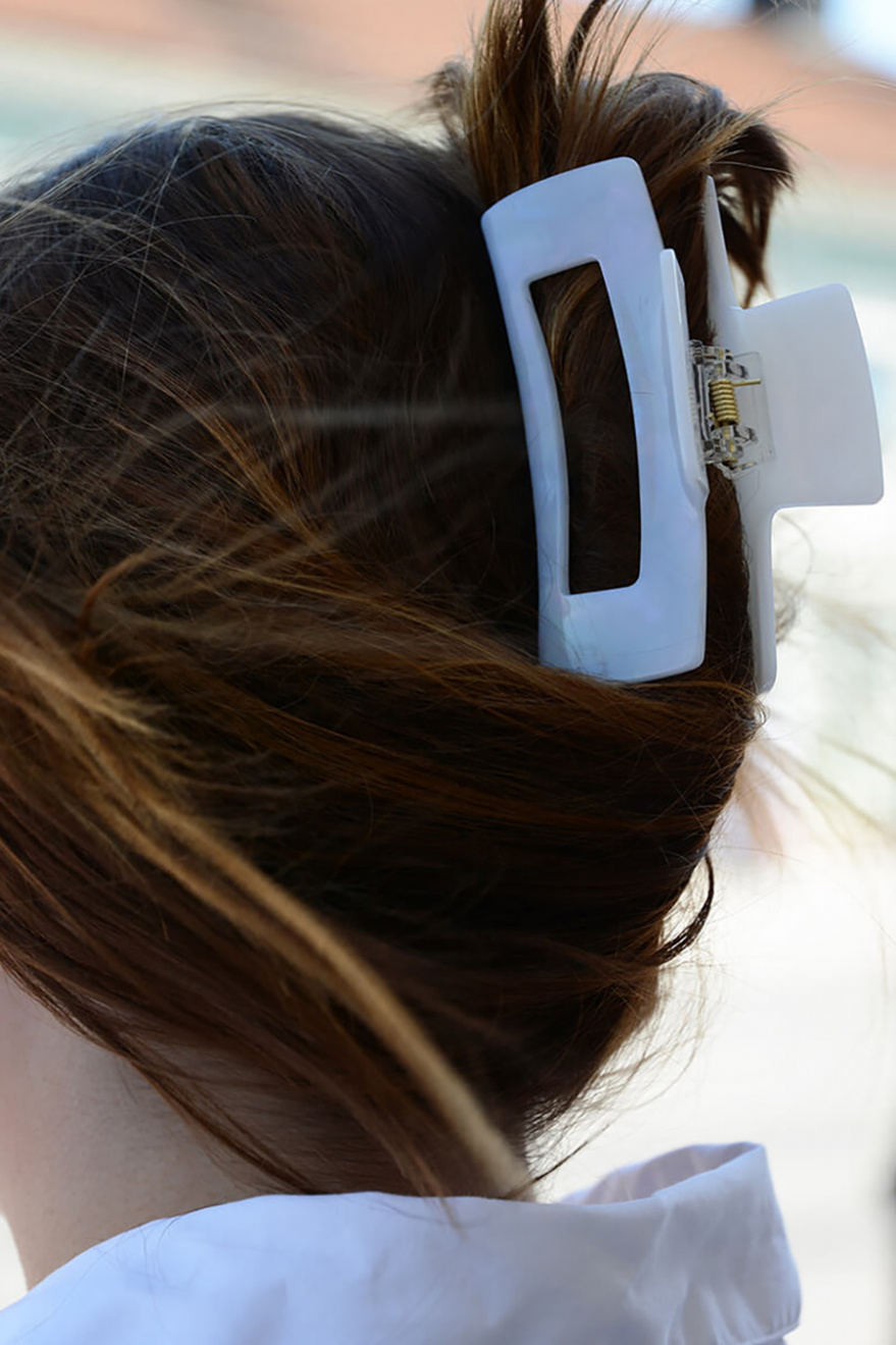 Större hårklämma som fångar in allt hår, gjord i cellulosaacetat från Elin et Acc.