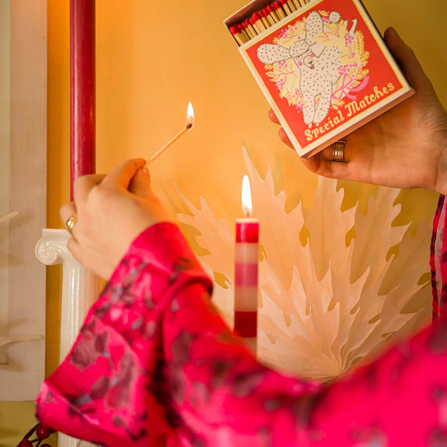 Tändsticksask tryckt på en vintage väderkvarnspress med guld detaljer och ca 125 tändstickor från Archivist.- Innehåller ca: 125 tändstickor
