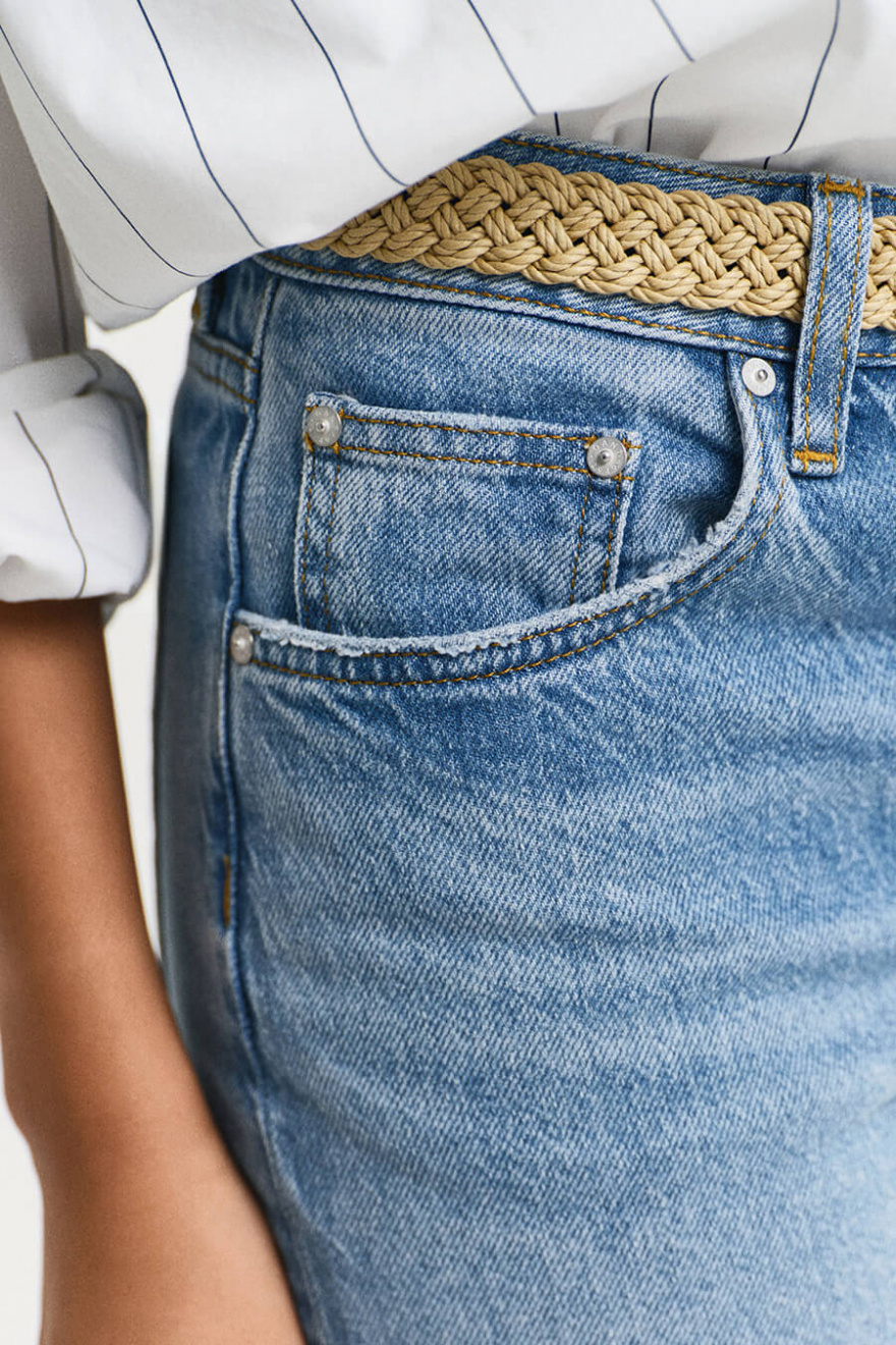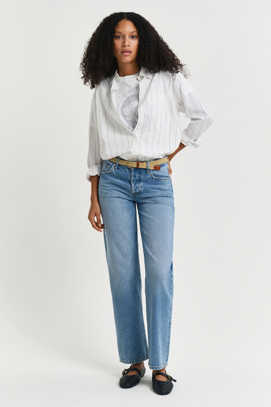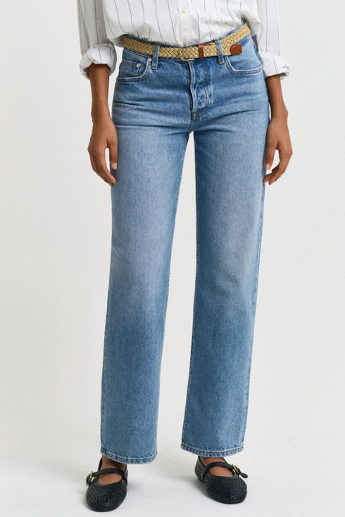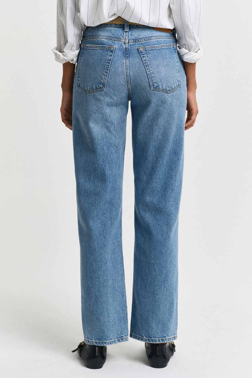 Blå jeans i en ljusblå indigo tvätt som känns både klassisk och modern, smickrande passform och en kvalitet som bara blir bättre med tiden. En garderobsklassiker att leva i.Jeans i en bomullsblandning med normal passform, raka ben, medelhög midja och logga bak i läder från Gant. Är hellånga men modellen som visar är 177cm lång.