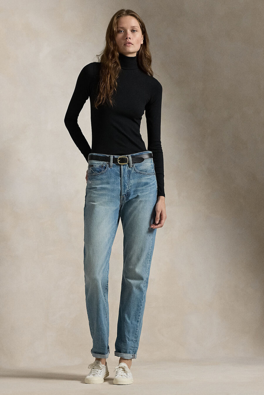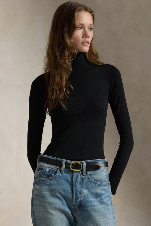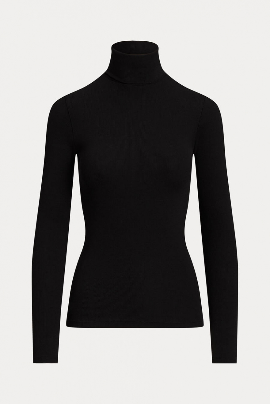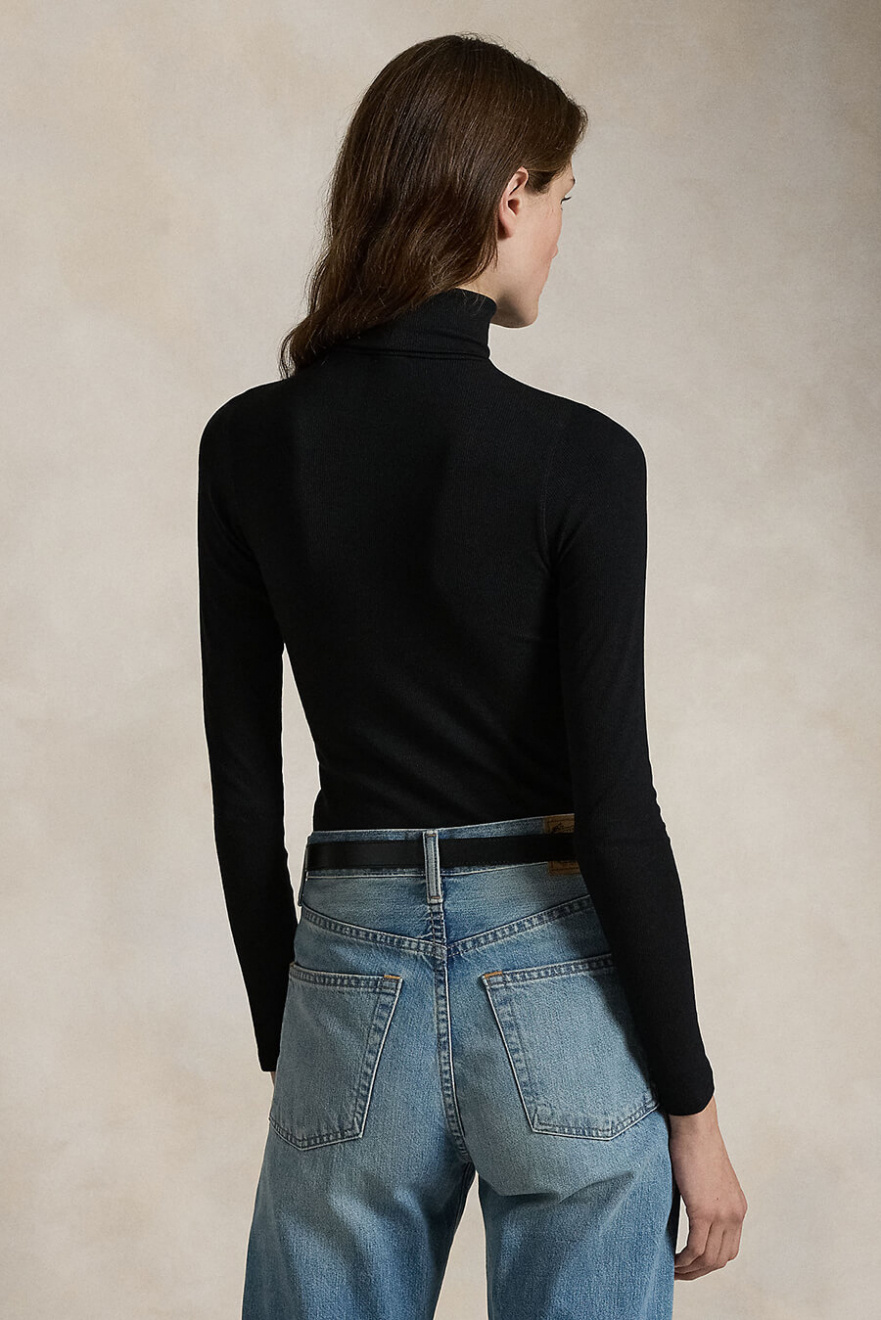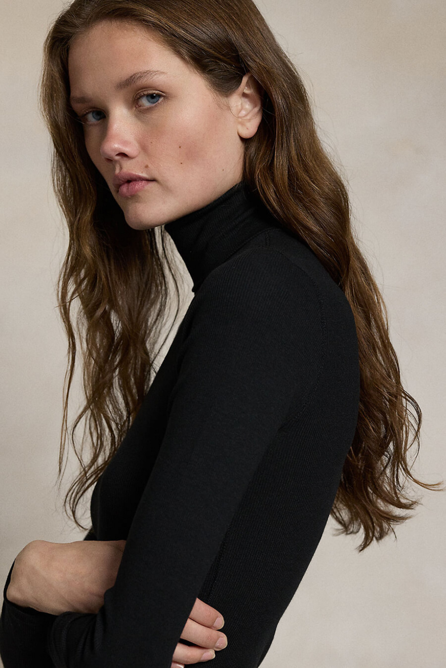 En svart topp med polokrage i slim fit är ett tidlöst plagg som kombinerar elegans och stil. Perfekt för alla tillfällen – oavsett om du klär upp eller ner din look.Tunn ribbad topp i en bomullsblandning med polokrage, smal passform, långa ärmar och liten broderad logga från Polo Ralph Lauren.