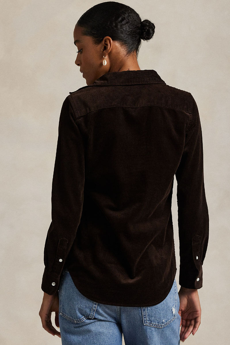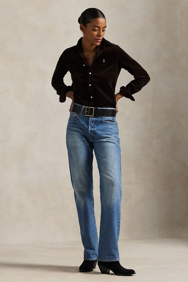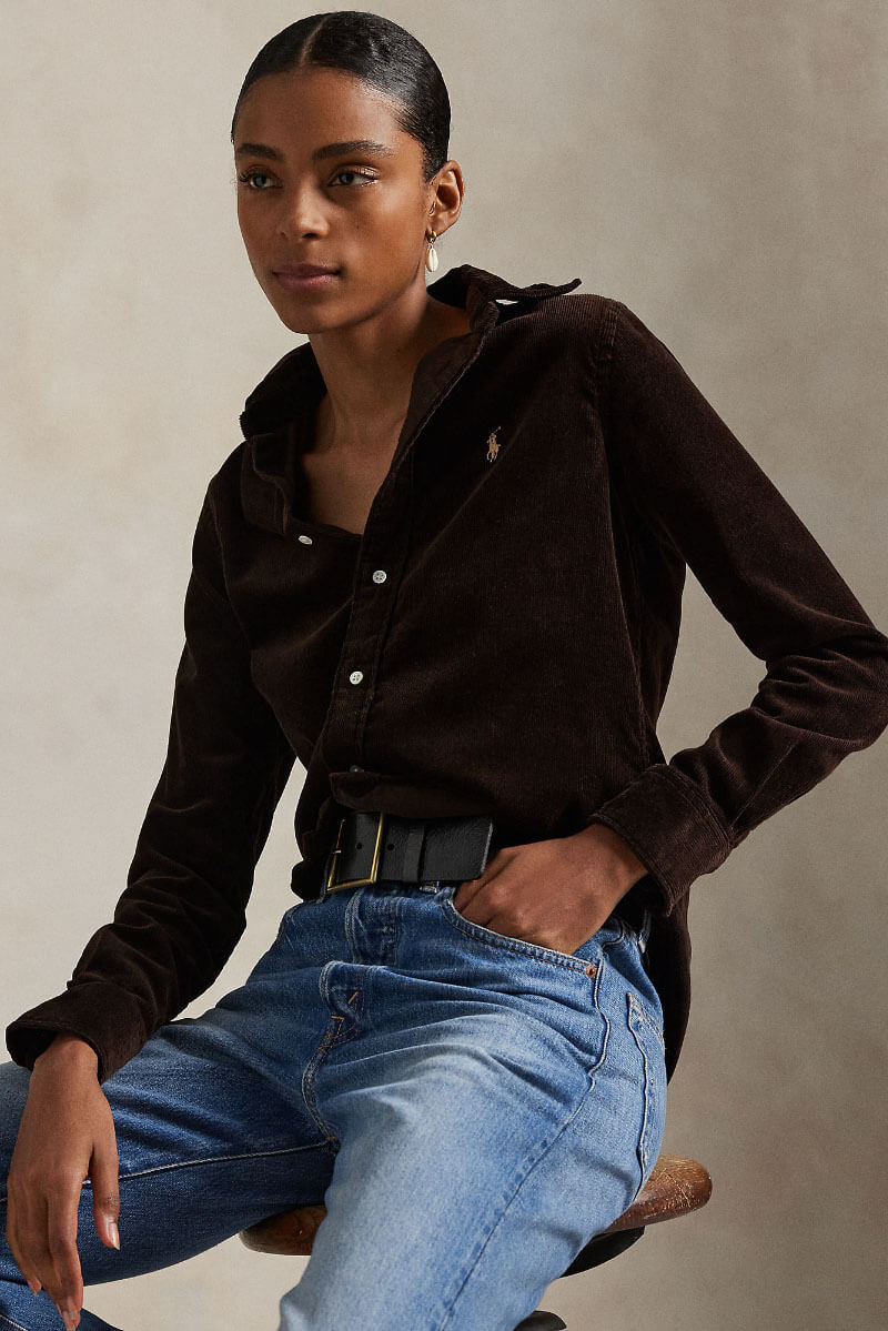Höstens mest avslappnat eleganta plagg - manchesterskjorta! Styla med jeans och boots för vardagens enkelhet, eller kjol och höga stövlar för en mer sofistikerad look.Manchesterskjorta i en stretchig bomullsblandning med button down krage, broderad logga fram, stängs med knappar och smal passform från Polo Ralph Lauren.
