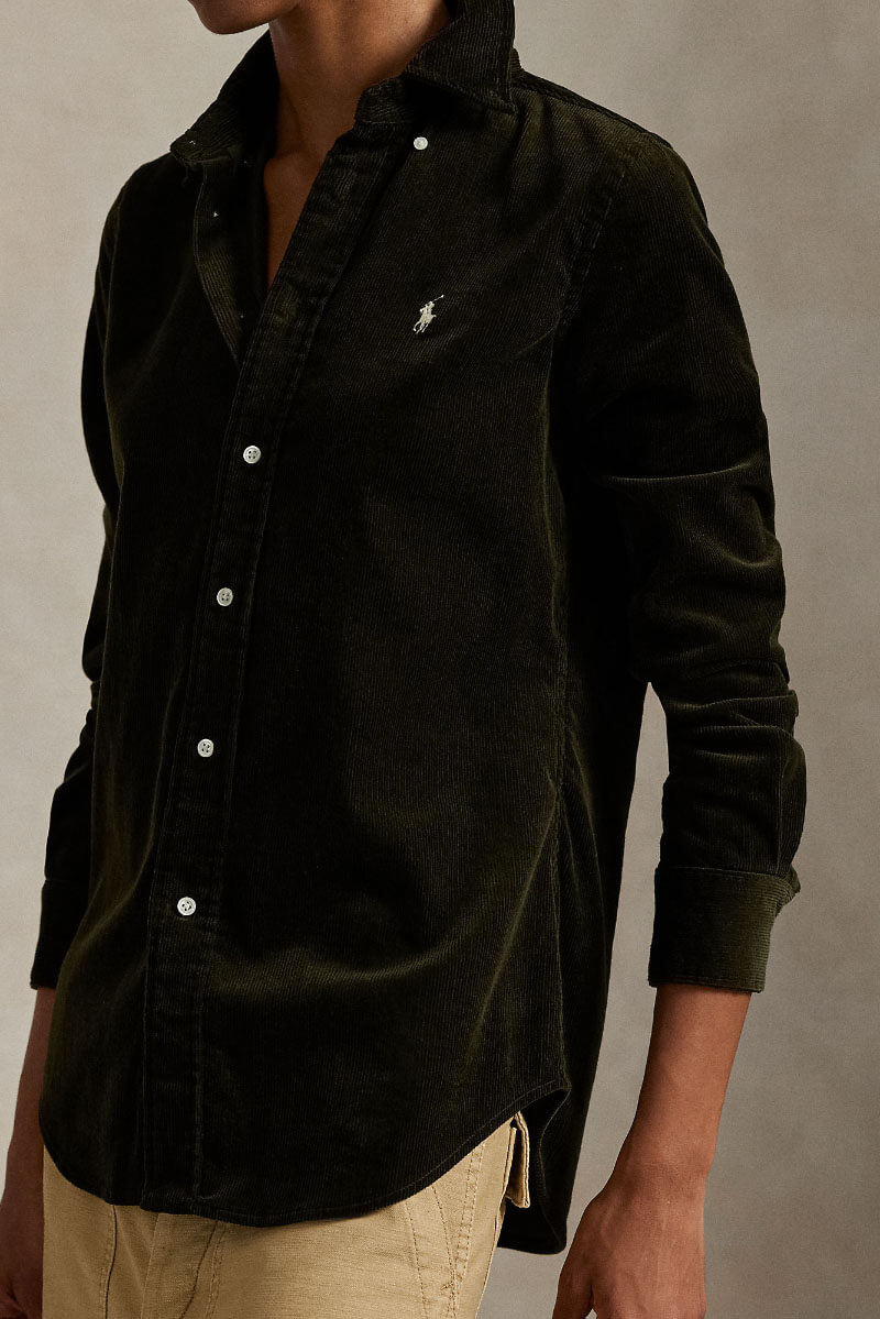 Höstens mest avslappnat eleganta plagg - manchesterskjorta! Styla med jeans och boots för vardagens enkelhet, eller kjol och höga stövlar för en mer sofistikerad look.Manchesterskjorta i en stretchig bomullsblandning med button down krage, broderad logga fram, stängs med knappar och smal passform från Polo Ralph Lauren.