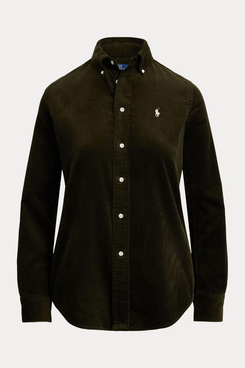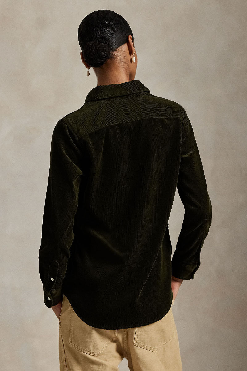 Stretch Slim Fit Cotton Corduroy Shirt, Olive