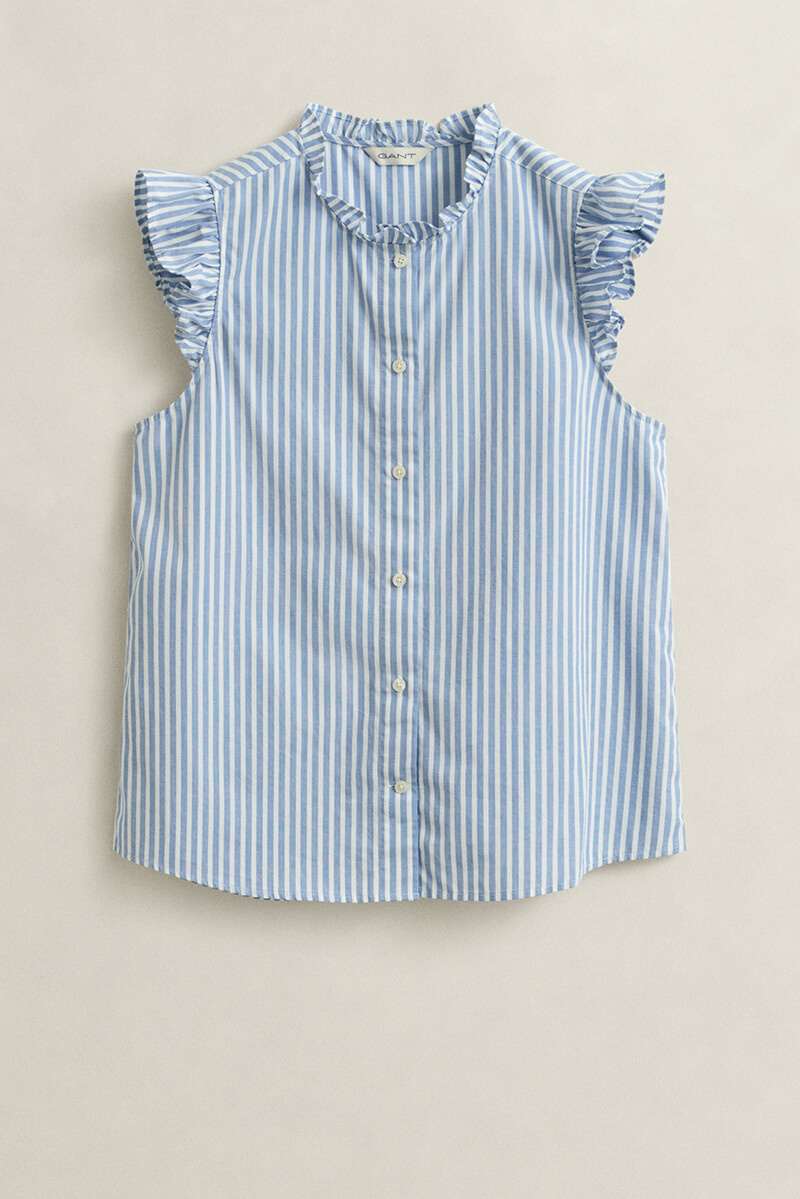 Stripe ctn ruffle blouse, Palace blue