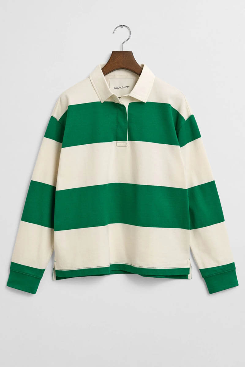 Klassisk preppy möter samtida silhuett i denna croppade rugbytröja från GANT – ett statementplagg som kombinerar sportighet med feminin edge. Med sin robusta bomullskvalitet, ikoniska krage och knappar i halsen är tröjan trogen sitt arv, men den uppdaterade, kortare passformen ger looken en självsäker attityd.
