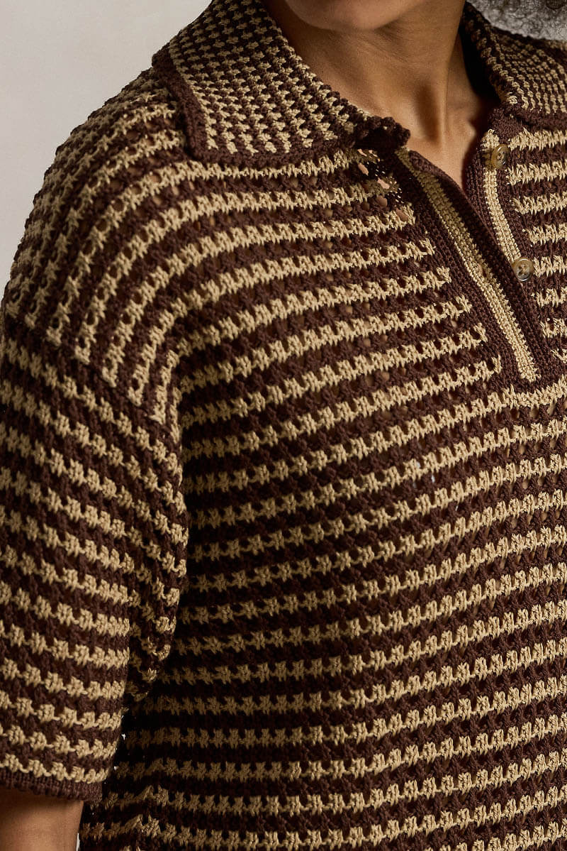 Striped Knit Cotton Polo Shirt, Chocolate Stripe