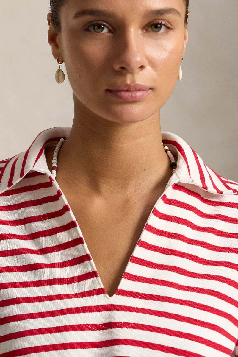 Striped split-placket mariner tee, Red/deckwash white