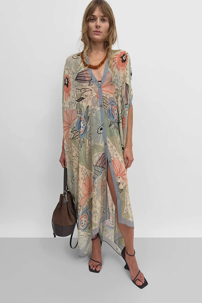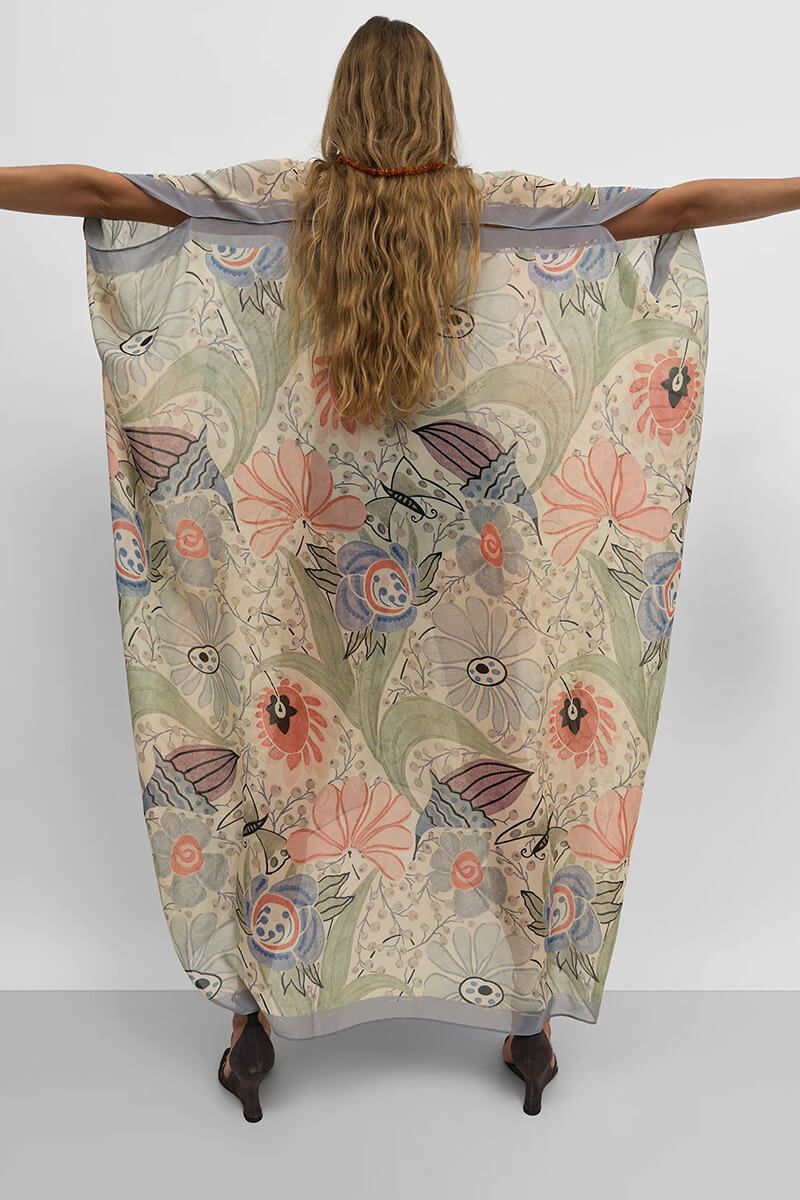 Mångsidig kaftan – kan bäras som klänning, vikas till en oversized sjal eller svepas som en pareo.