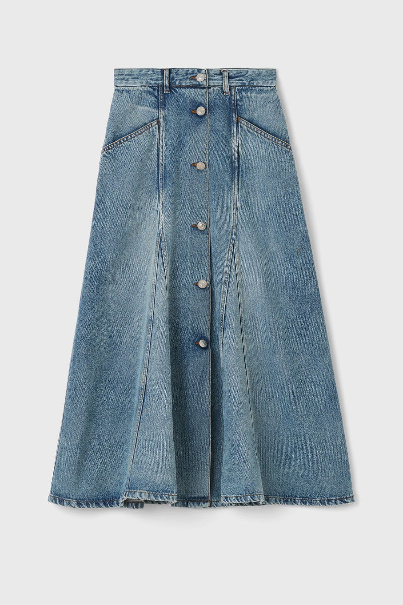 En karaktärsfull denimkjol som flirtar med 70-talets ikoniska estetik. Den mjuka kvaliteten ger kjolen ett fint fall och en bekväm känsla, medan knappraden framtill skapar en förlängande silhuett som fungerar lika bra till en enkel t-shirt som till en elegant blus.