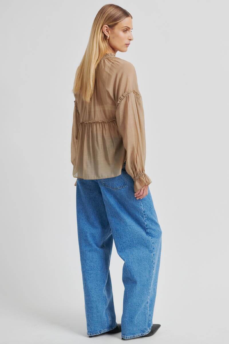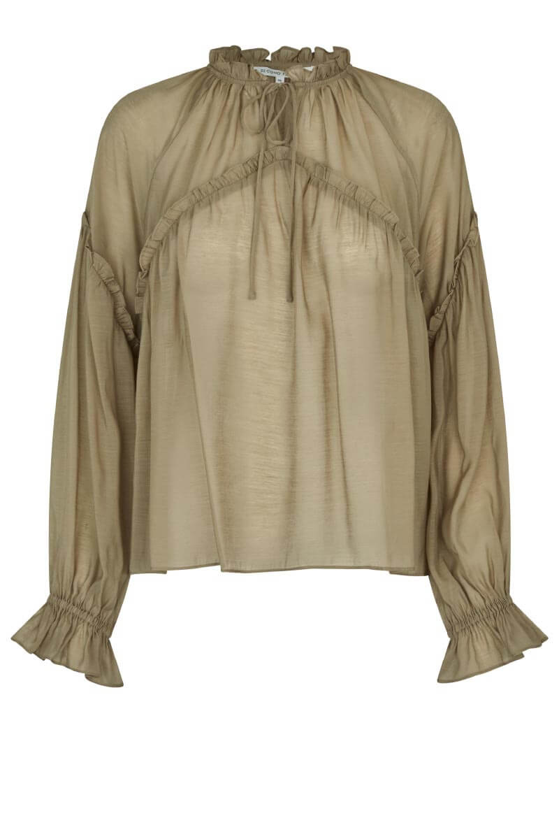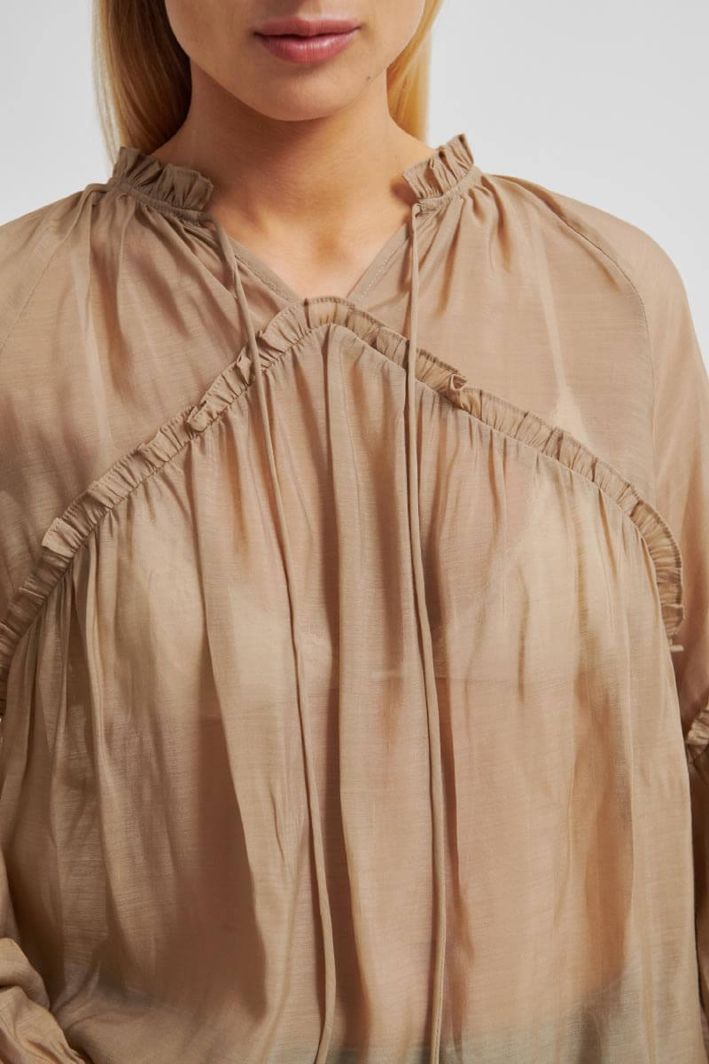 Blus i lätt och semitransparent kvalitet med volangdetaljer vid krage, ärmslut och framtill från Second Female.