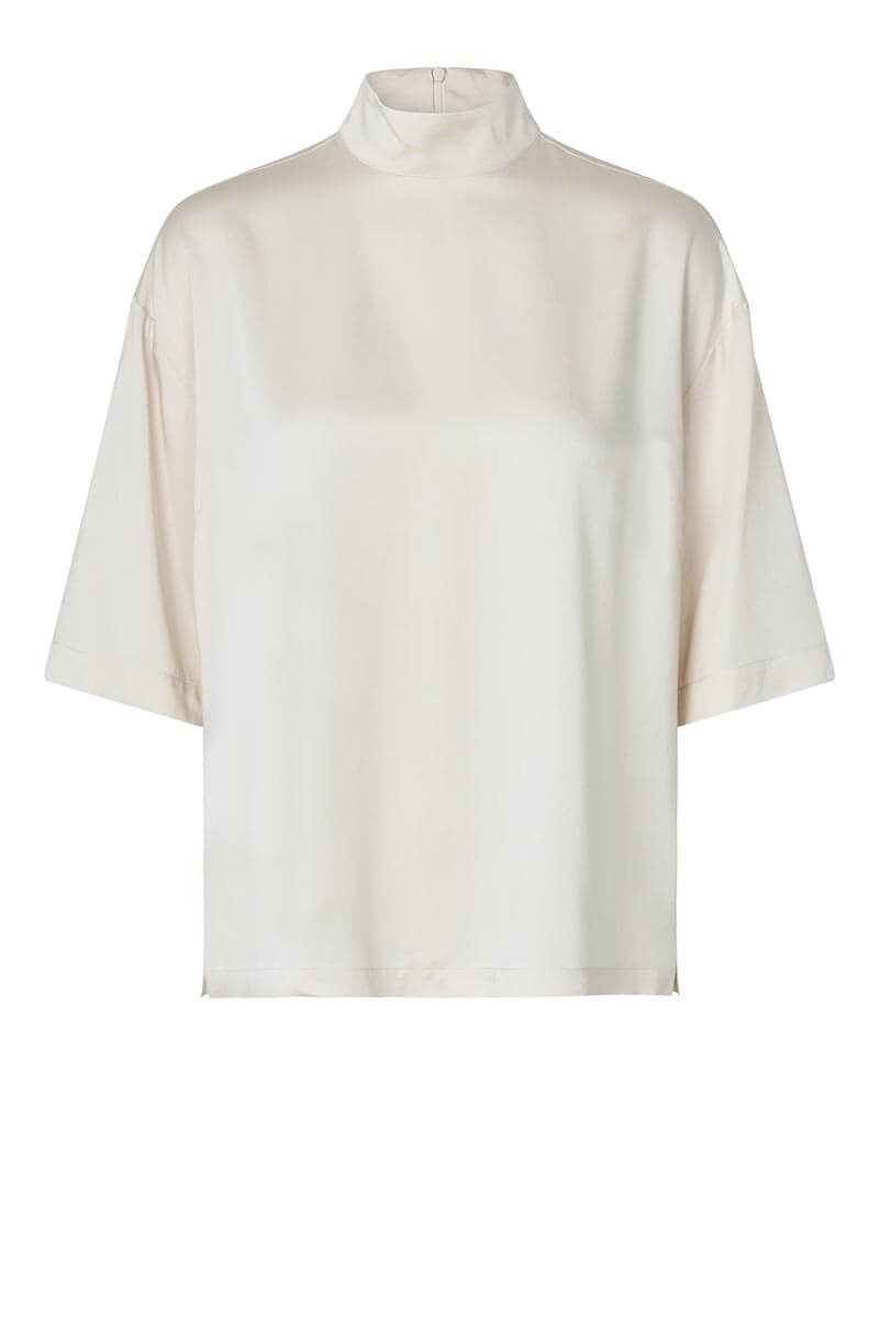 Topp i mjuk och följsam viskos–tencel-blandning från Second Female. Hög halsringning, dold dragkedja i ryggen samt små slitsar i sidan. Rak, boxig passform.