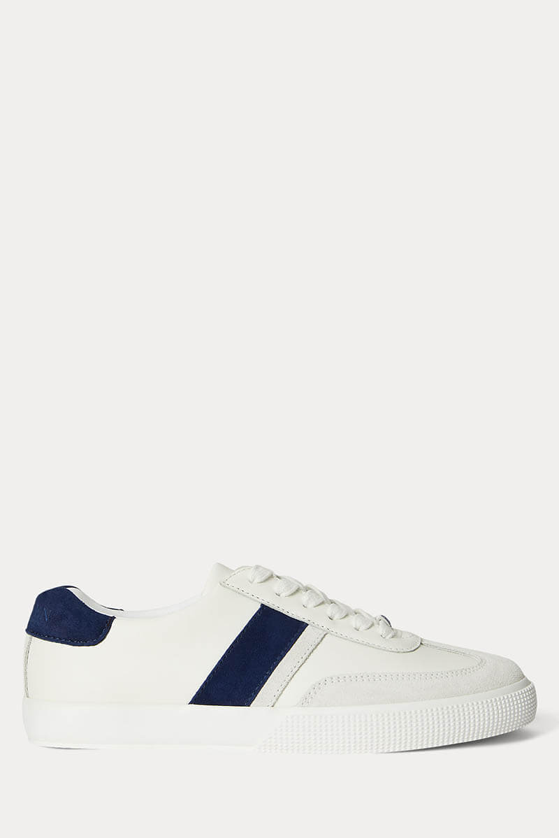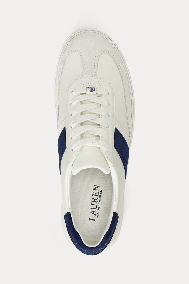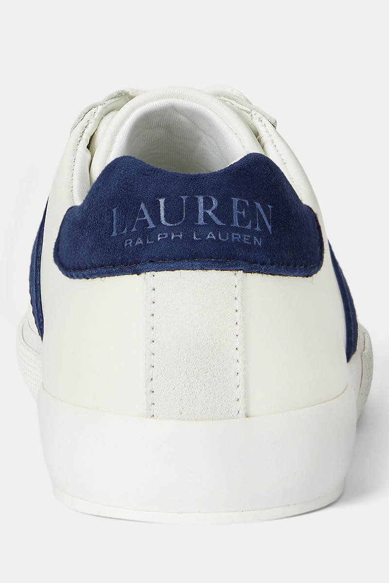 Sportiga sneakers i en kombination av läder och mocka som ger både stil och komfort hela dagen. Ett perfekt tillskott till din garderob, passar lika bra med jeans som till kjol.Sneakers i läder och mocka med snörning, vadderad innersula, stötdämpande skumfotbädd och yttersula i gummi från Lauren Ralph Lauren.