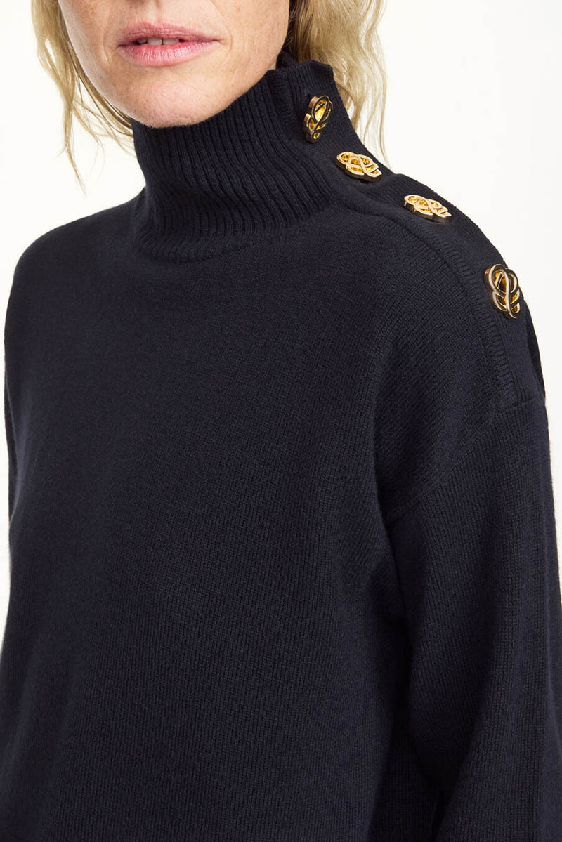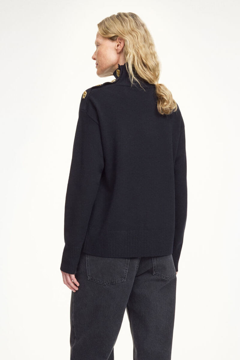 Den sköna Vanilla Sweater blir snabbt en självklar favorit under höst och vinter – säsong efter säsong. Stickad i den mjukaste ull och designad med en karaktäristisk knäppning på axeln med dekorativa knappar i scribble-motiv. Perfekt att bära över nästan allt i garderoben när temperaturen sjunker.