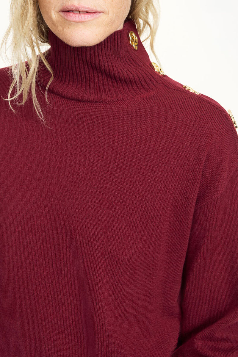 Den sköna Vanilla Sweater blir snabbt en självklar favorit under höst och vinter – säsong efter säsong. Stickad i den mjukaste ull och designad med en karaktäristisk knäppning på axeln med dekorativa knappar i scribble-motiv. Perfekt att bära över nästan allt i garderoben när temperaturen sjunker.