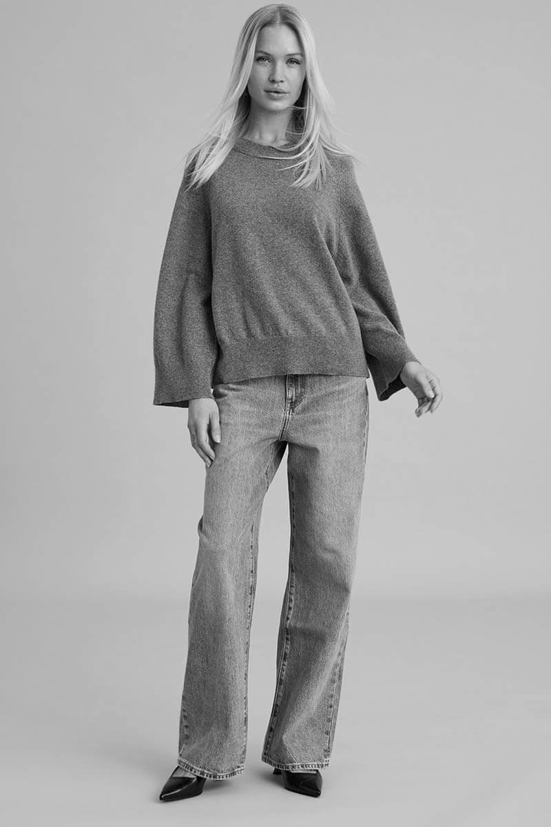 En mjukfavorit i garderoben! Den här klassiska grå tunnstickade tröjan är designad i en något lösare passform som ger en avslappnad men stilren siluett.