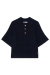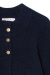 Låt en mörkblå cape bli säsongens nyckelplagg. Med sin rena siluett och subtila detaljer adderar den både elegans och värme. Bär den över skjortan eller till skräddade byxor för en uppdaterad och samtidigt tidlös höstlook.Stickad kofta i en mohairblandning med guldfärgade knappar fram, vida korta ärmar, ribbstickade kanter och rund halsringning från Busnel.
