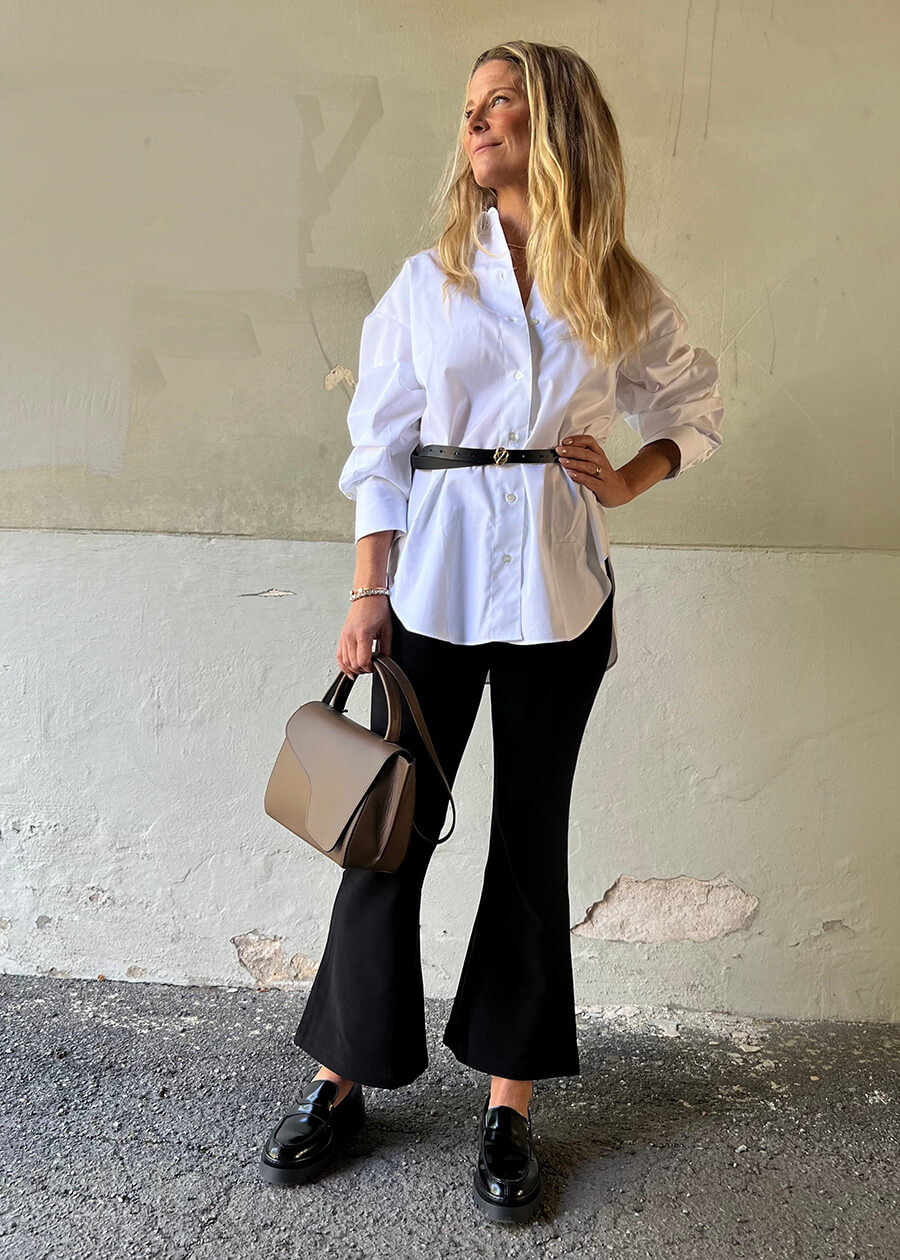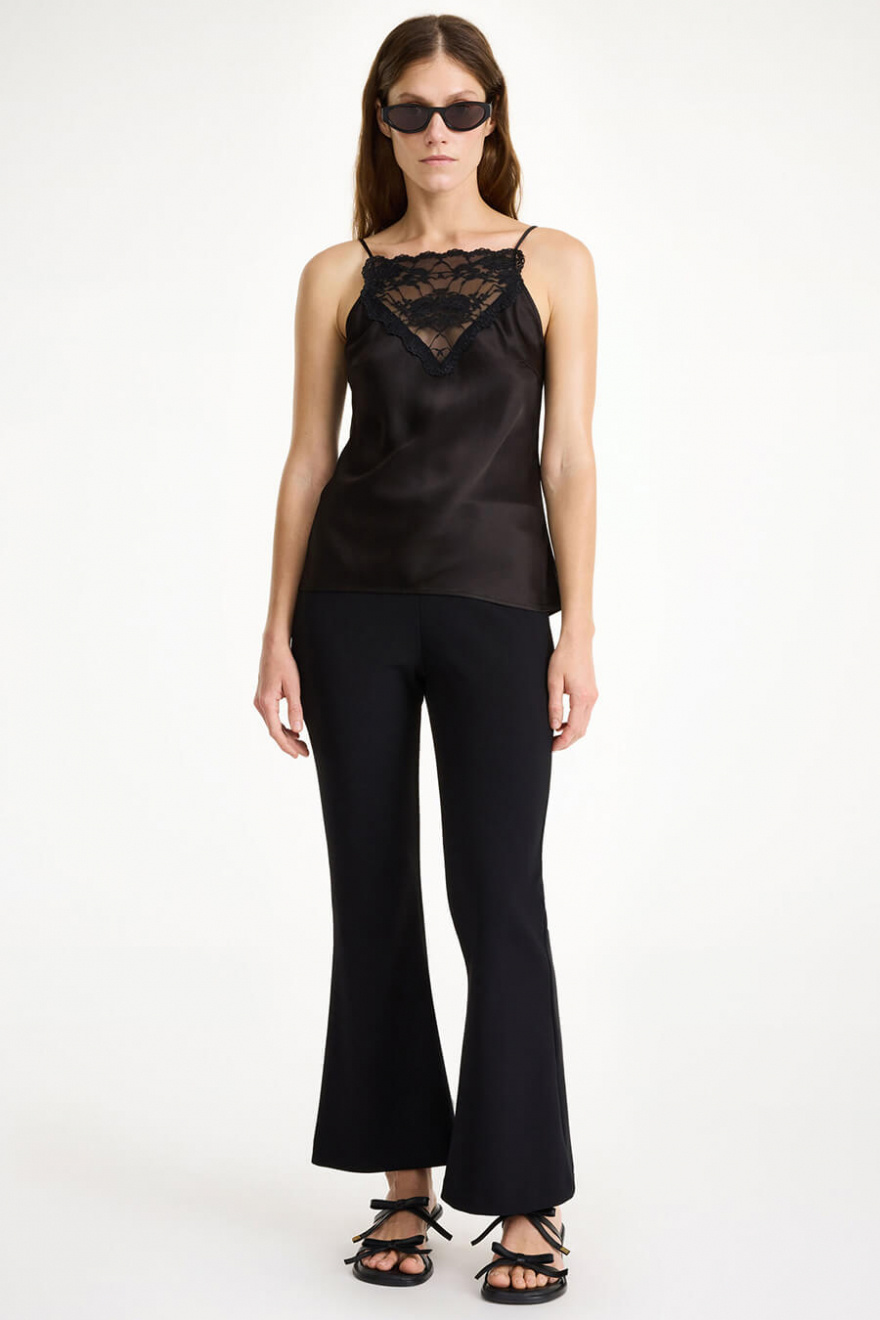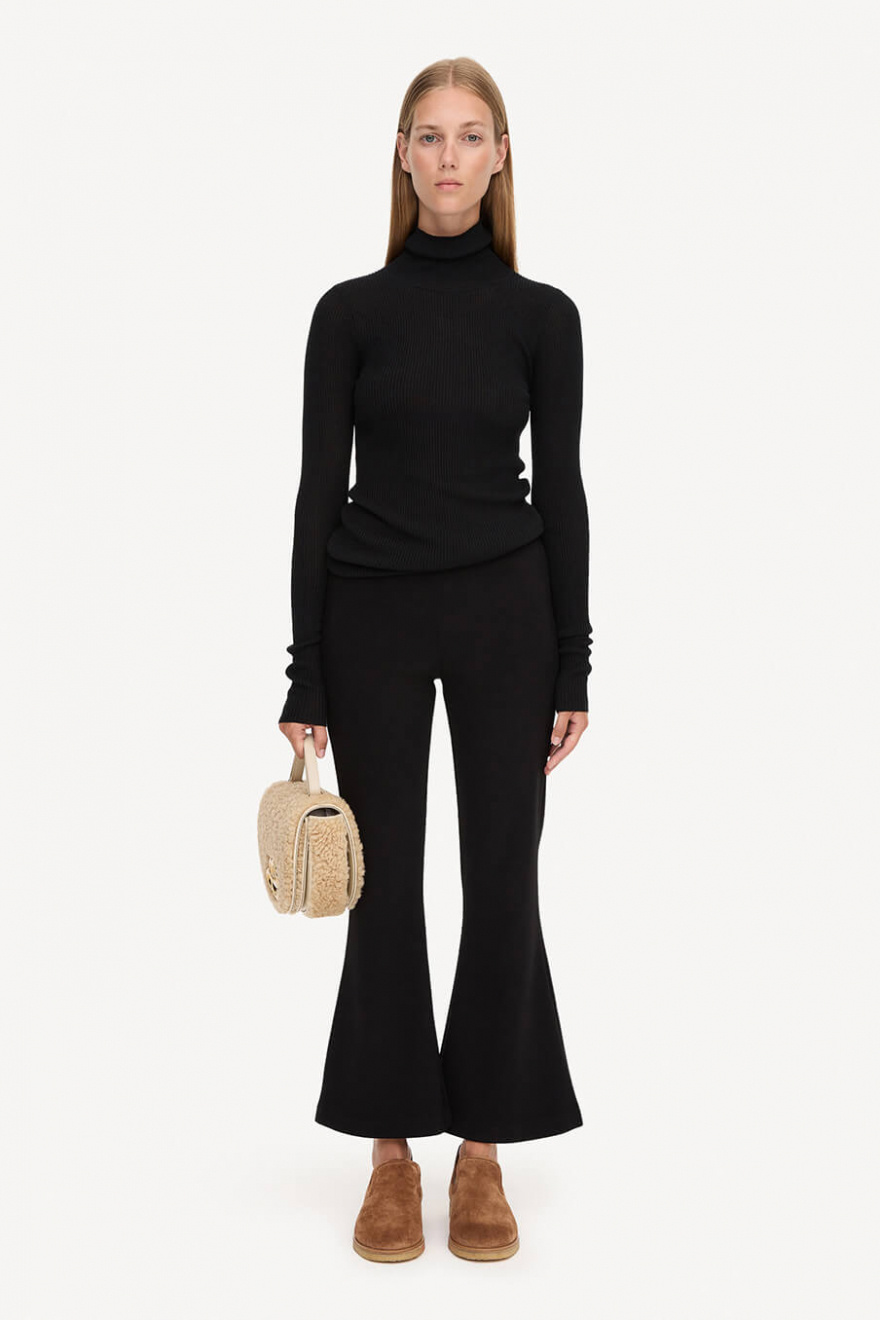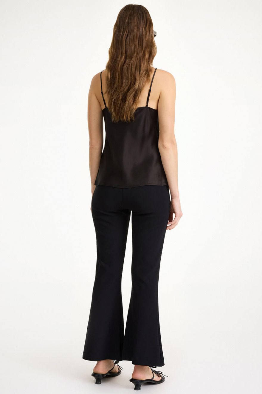 Byxa i skönt stretchigt material med en normal passform, vida ben och en hög elastisk midja från By Malene Birger.- 56% Återvunnen Polyester, 39% Polyester, 5% Elastan