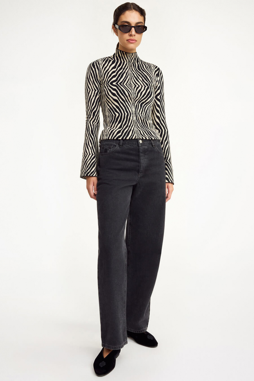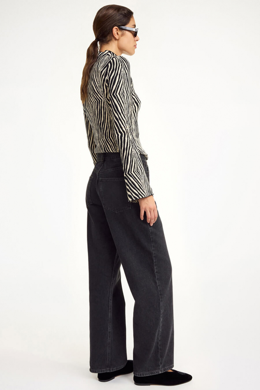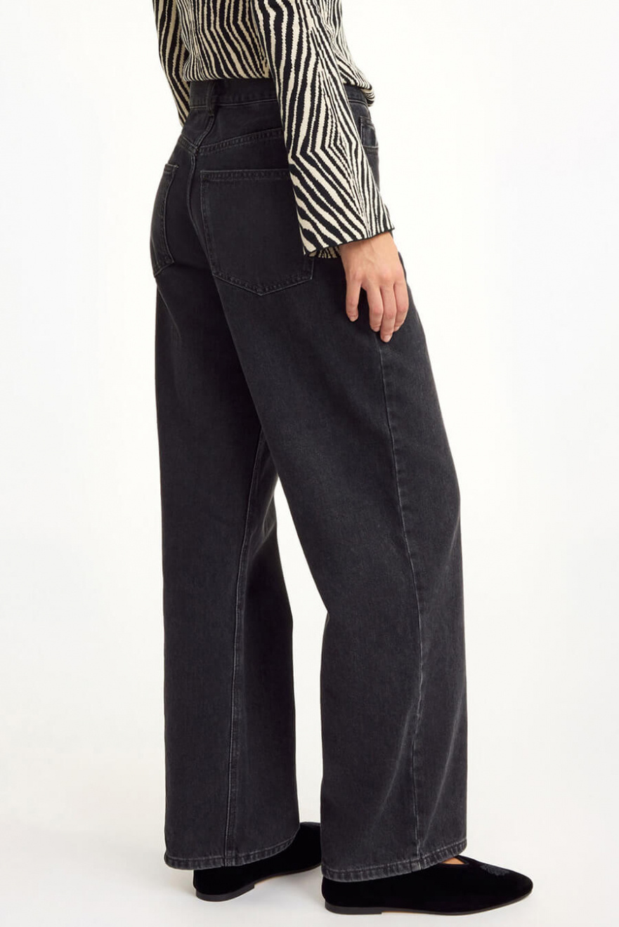 De svarta jeansen med lätt utsvängda ben och lös passform är den ultimata basen i garderoben. Kombinera med en oversized skjorta för en chic vardagslook eller dressa upp med klackar. Ett måste för dig som vill ha både stil och komfort!Jeans i ekologisk bomull med något vida ben, medelhög midja, stängs med knappar fram och lös passform från By Malene Birger.