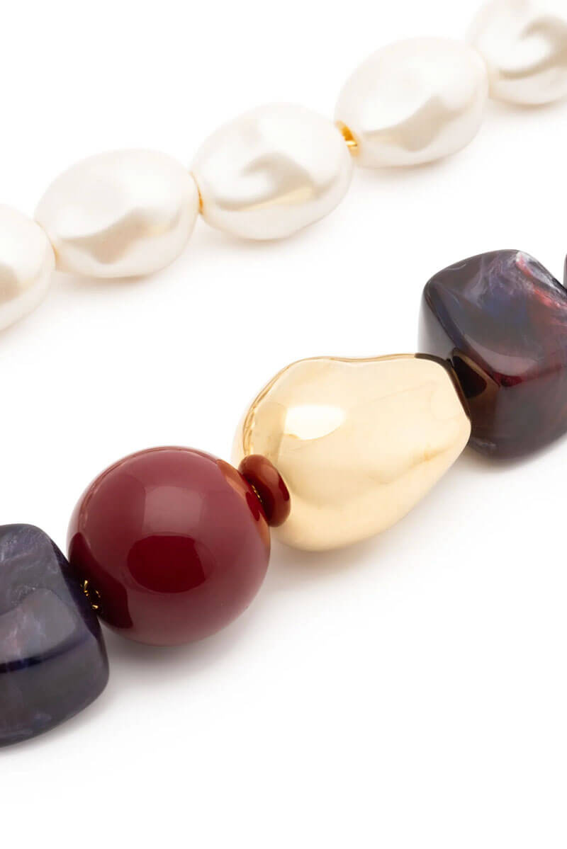 De nätta pärlorna på ena sidan ger en subtil sofistikation till varje tillfälle, medan de lekfullt formade pärlorna på den andra sidan tillför en livfull känsla.