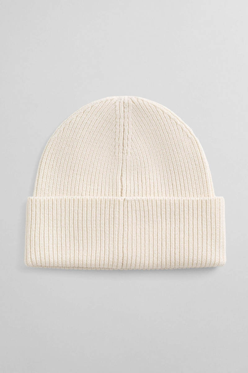 Lyft din vinterstil med denna krämvita stickade mössa i ull. Mjuk, varm och tidlös, ger den både komfort och elegans. Perfekt för att komplettera din look under kalla dagar.Stickad mössa i ull med uppvikt kant, diskret broderad logga fram och ej fodrad Gant.