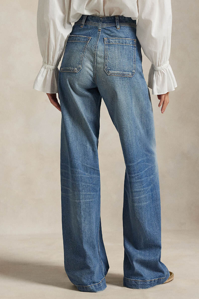 Jeans i stretchig denim med hög midja, vida benslut och patchfickor från Polo Ralph Lauren.
