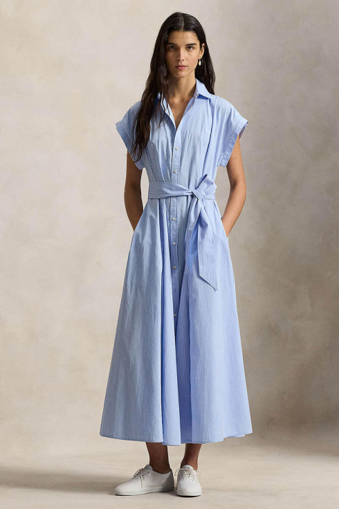 Woven-shirt dress-dresses, Blue multi stripe