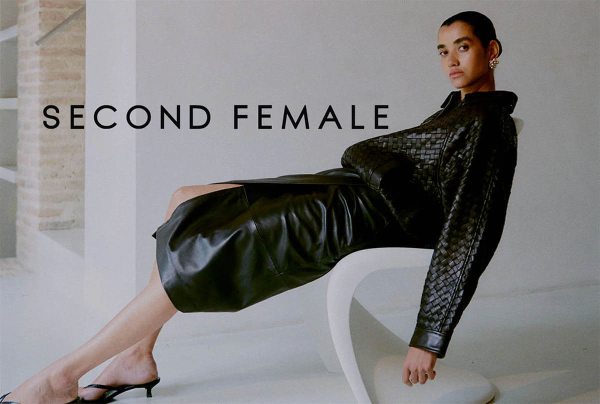 Second Female grundades i Köpenhamn år 2000. Stilen är skandinavisk med en elegant och modern fransk touch. Detta återspeglas i de fyra kollektioner per år genom feminina silhuetter, handritade tryck, fint stickat och skräddade plagg som byxor oxh kavajer.